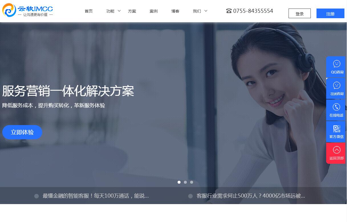 | 网站简介: 云软ImCC是新一代企业级全渠道智能云客服平台,10万企业正在享受ImCC提供的在线客服、呼叫中心、工单系统、智能机器人等服务带来的变化,帮助企业快速搭建客户服务营销平台,为各行业提供专业化的服务,ImCC助力企业打造极致用户体验。深圳云软信息技术有限公司是一家年轻、富有责任感、勇于创新的互联网公司,云软致力于为企业提供更灵活、更安全的SAAS应用服务,让中国更多的企业以最小的成本获得以往大企业才能使用的软件服务,让移动互联网时代的沟通更有效率和价值。云软基于国内最大的社交入口微信及 QQ 平台,依托技术创新和资源整合,以呼叫中心、即时通讯工具整合为核心技术,为企业提供即时部署、快速集成的SaaS 应用服务,同时云软还为企业提供开放的接口以及灵活的定制服务,深入企业内部办公管理和移动网络营销,为企业提供一个全渠道的移动互联网网络营销客户服务平台。 |