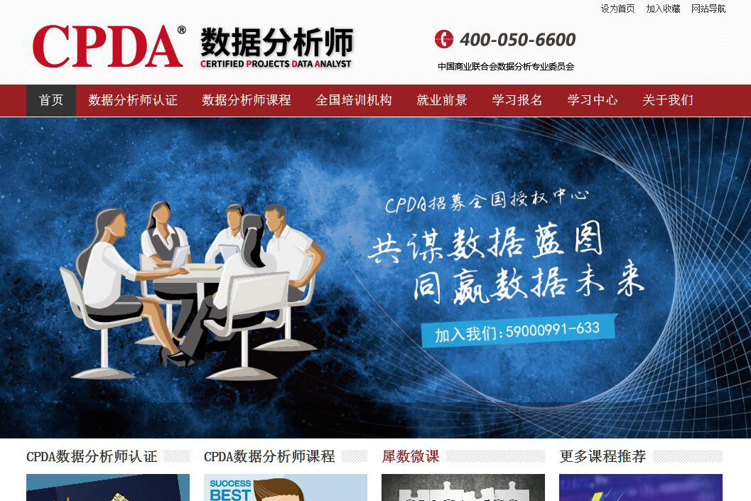 中国商业联合会数据分析专业委员会成立于2008年4月,是经国务院国有资产监督管理委员会审核同意、中华人民共和国民政部正式批准和登记的中国数据分析行业的行业协会,是以数据分析师及数据分析师事务所等从事与数据分析行业相关的团体与个人自愿组成的全国性数据分析行业组织。北京中盈达科技有限责任公司成立于2003年,是中国商业联合会数据分析专业委员会指定的负责CPDA数据分析师专业技术人才、CDA数据分析员培养全国唯一的运营管理机构。《CPDA数据分析师证书》是中国数据分析行业认可的、具有从业特征的证书,此证书是申请成立数据分析师事务所必要条件,是具备在政府和企业中从事专业数据分析工作能力的体现,是承接数据分析业务被市场及客户认可的资质证书。《CPDA数据分析师证书》具有广泛的社会认知度和权威性,无论是地方政府引进人才、公务员报考、各大企业选聘人才,还是招投标加分、单位加薪,随处可见“CPDA数据分析师”认证的影响力。“CPDA数据分析师”是以数据为依据,运用科学的计算工具,将经济学原理与数据模型结合,用图表等方式进行呈现,为分析报告提供清晰的数据分析结果,对政府和企事业在经营和决策过程中,通过对现状及远期进行统计、分析、预测并转化为决策的专业人才。“CPDA数据分析师”是中国大数据领域从业认证第一品牌,已经发展16余年,目前在全国已有数万名数据分析师人才。“CDA数据分析员”是由数据分析行业主管协会—中国商业联合会数据分析专业委员主办,通过考试者可以同时获得工业和信息化部和商业协会颁发的职业技能证书,该证书代表数据分析人员的技能水平,为企、事业单位选拔和聘用专业人才的参考依据。数据分析员既可作为专职人员在各行各业做基础数据分析工作,也可在各自的岗位上通过所掌握的技能为各自的岗位提供科学、真是和准确的数据分析决策的依据。