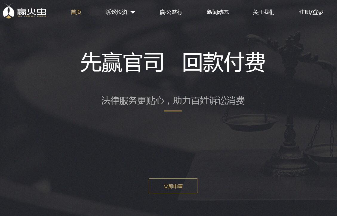 | 网站简介: 赢火虫信息科技(上海)有限公司旗下赢火虫诉讼投资服务平台,基于大数据与“互联网+”,为案件的诊断、诉讼、执行,债权销售等提供数据支持服务,撮合当事人和律师的合作。“先赢官司,回款付费”,为当事人提供“一站式”“诉讼支持”方案。赢火虫以“守正、责任、创新、共赢”为价值观,积极投身“法律+互联网+资本”的实践和探索,致力于成为改变百姓诉讼消费习惯的平台。帮助百姓打得起官司,享受安心法律服务,推动法律行业发展,让他们都能感受到公平与正义。变革律师旧模式,引领诉讼新时代,始终做具有强烈社会责任感的企业。 |