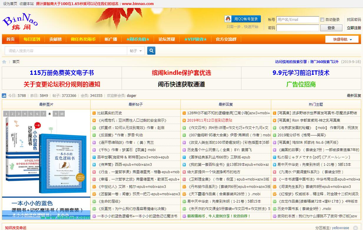 | 网站简介: 缤闹(www.binnao.com)kindle论坛拥有最全的kindle电子书、kindle漫画、kindle杂志,提供mobi/epub/azw/pdf/txt等格式的kindle电子书免费下载和kindle交流平台,每日推荐精选kindle电子书。 |