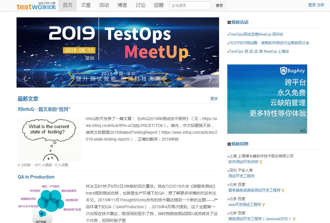 | 网站简介: 测试窝是以软件测试为主题的社区门户,作为开源非盈利的技术平台。一直坚持自由、开放、分享的理念。目前已成为最具影响力的软件测试工程师交流平台。提供原创技术写作、海外测试译文、测试招聘发布为主。同时兼具为平凡测试人记录测试工作心路历程,发布最新海内外测试资讯,以及线下沙龙活动。成立于2009年的测试窝,那时正是SNS兴起的年代,起初“测试窝”希望在软件测试同行间构筑起一个属于软件测试人,自己的社交平台---而非传统博客的刻板,也非BBS与Q群的天马行空般的交流,更非大众SNS的娱乐属性,“窝”字正代表留给测试人温暖且不刻意的测试交流小窝。不忘初心,让我们继续前行。 |
