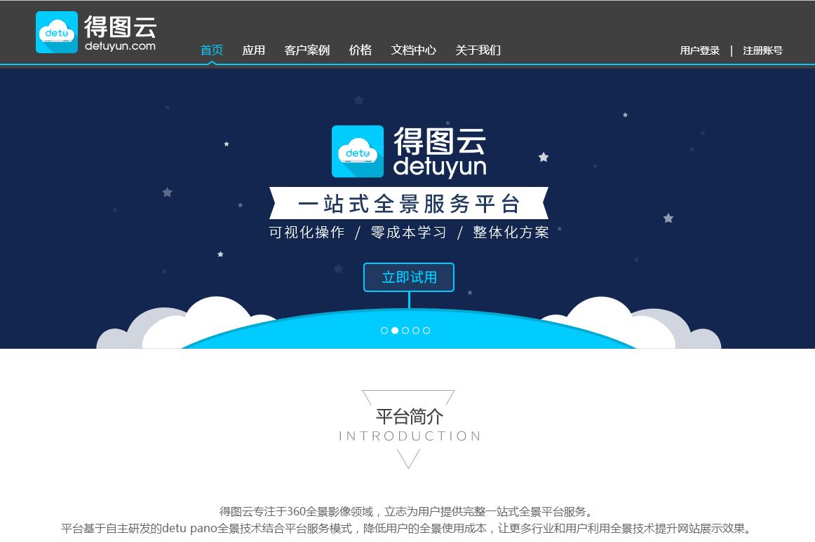 | 网站简介: 得图云为web端和移动端开发者与商业客户提供基于图片的全景云应用服务,以paaS的方式提供包括全景剪辑、全景漫游、全景展示、物品3D、高清展示等图片应用,专注于围绕“360全景”的创新图片应用服务,帮助用户者降低全景使用成本,提高展示效果,是一站式全景服务平台。平台基于自主研发的detu pano全景技术结合平台服务模式,降低用户的全景使用成本,让更多行业和用户利用全景技术提升网站展示效果。 |