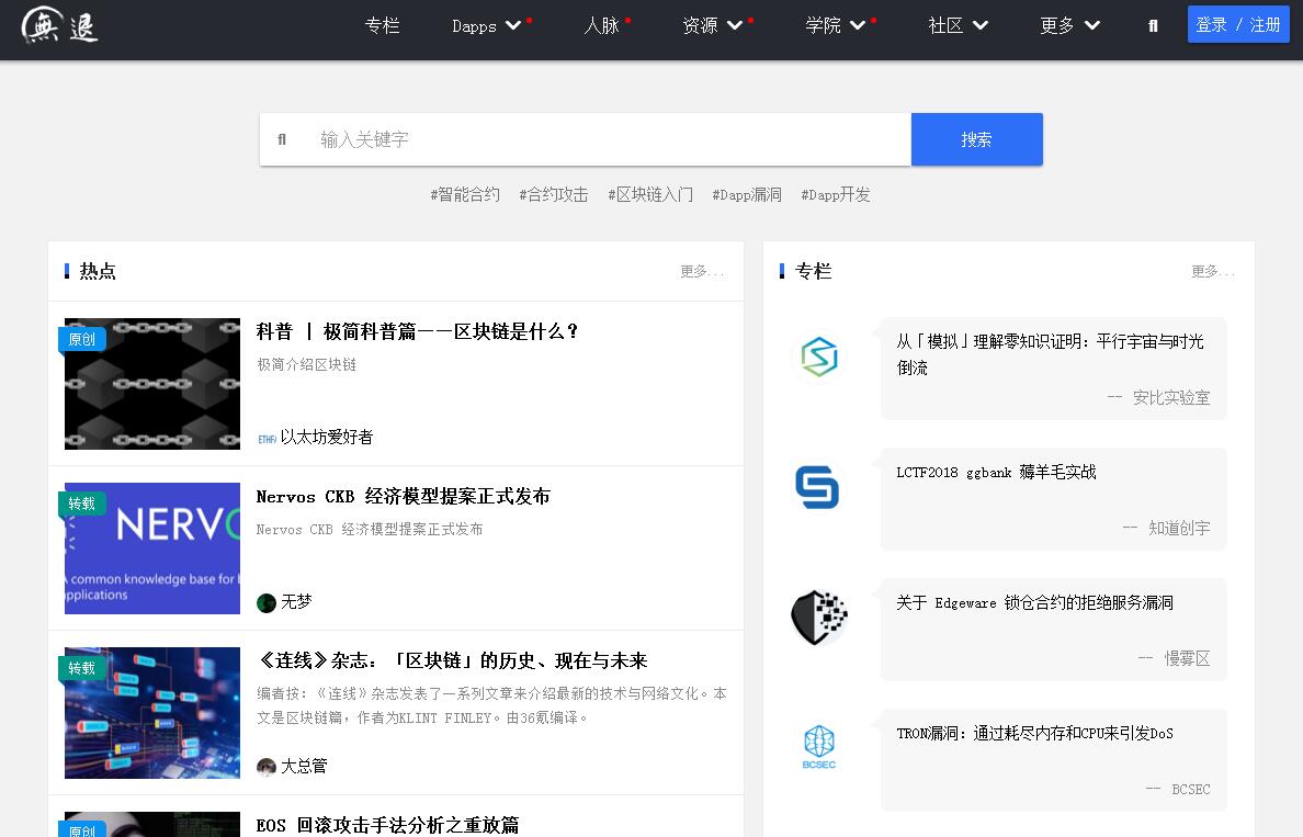 | 网站简介: 无退,第一个智能合约开发者社区,布道区块链智能合约的开发、改进、安全、工具以及DApps的落地。帮助更多的开发者理解智能合约和DApps的开发,并快速掌握开发出高质量、准确匹配业务的智能合约,使用无退的QuickSC工具,单机模拟任意私链,进行开发调试,并一键快速部署到任选公链。 |