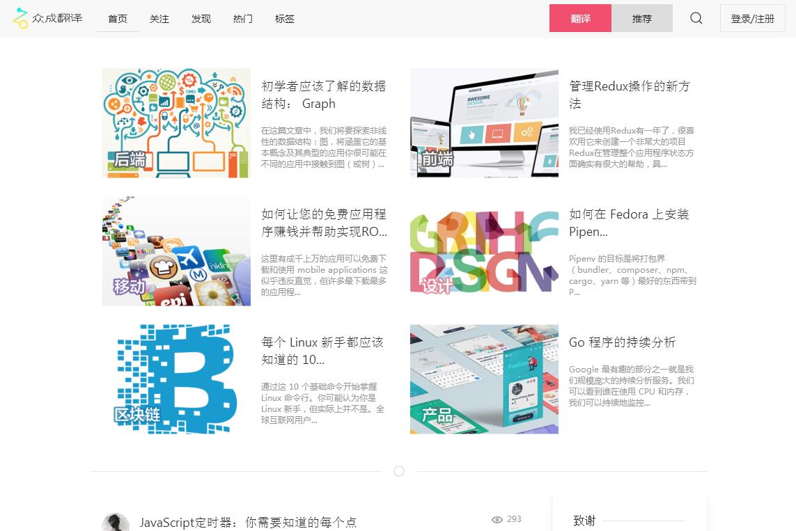 | 网站简介: 众成翻译(zcfy.cc),中国最好的技术翻译社区,最懂译者的翻译平台,奇虎360最大前端团队“奇舞团”出品。 |