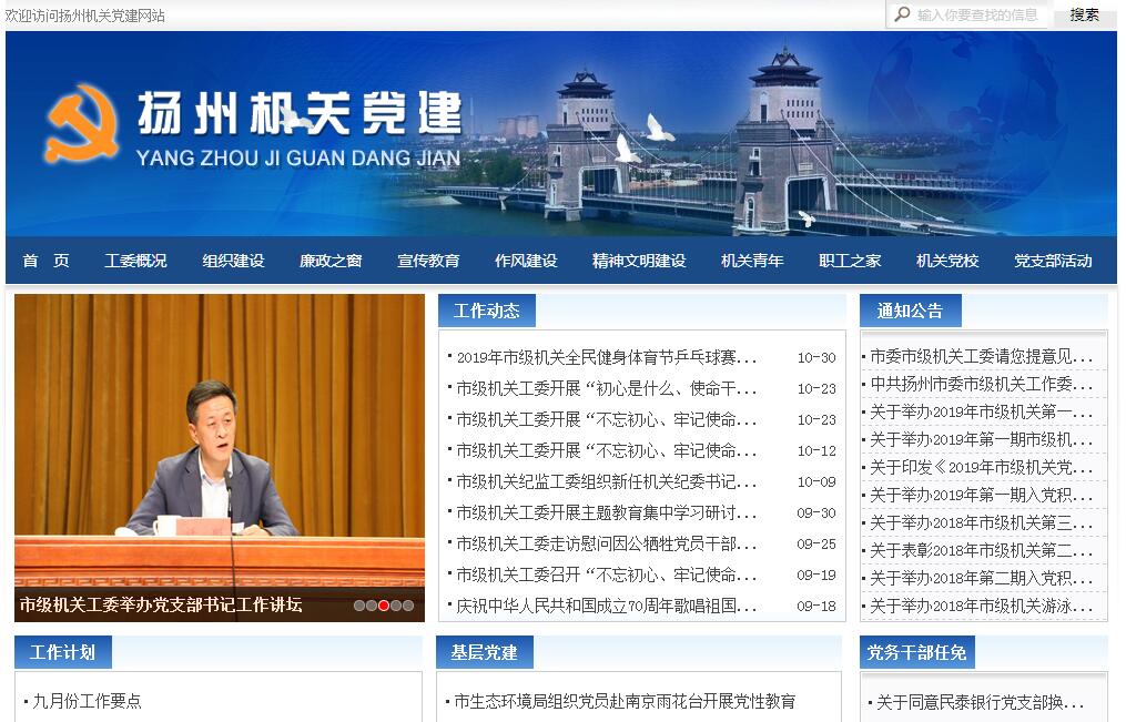 中共扬州市委市级机关工作委员会(简称市级机关工委)是中共扬州市委的派出机构,主要负责市级机关党的思想建设、组织建设、作风建设、纪检监察、精神文明建设和群团建设等工作。主要职责如下:1、以邓小平理论和“三个代表”重要思想为指导,认真落实科学发展观,紧密围绕市委工作中心,明确机关党的工作指导思想;按照《条例》的规定要求,负责制订市级机关党的建设规划,全面加强机关党的思想建设、组织建设、作风建设、制度建设和反腐倡廉建设。2、负责抓好市级机关党员干部的理论武装工作,指导机关各党组织做好机关党员干部的思想政治工作,协同市有关部门规划、协调、指导、检查市级机关党员干部的教育,做好机关党员科级干部和党务干部的政治理论和党建业务的教育培训。3、建立健全机关党的基层组织和党内组织生活制度。指导直属机关党委和其设立的纪委、直属党总支、直属党支部的换届选举工作,按规定程序和权限考核、审批其组成人员及书记、副书记的职务任免;负责管理、检查、考核基层党的组织生活情况;负责市级机关的党员发展工作,审批直属党总支和直属党支部发展的党员、预备党员转正;做好入党积极分子的培训教育工作。4、负责市级机关作风建设的具体事务和日常工作,做好市级机关作风建设的管理、监督、检查、评议、考核、总结、表彰等工作。5、组织、指导市级机关各单位党的纪律检查工作,负责抓好市级机关党组织和党员的党风廉政教育工作;审议并按规定权限审批机关党组织和党员违反党纪的处理决定。参加市纪委、市委组织部对机关各部门、各单位领导班子民主生活会的管理。6、负责市级机关精神文明建设工作。7、领导市级机关工会委员会、共青团市级机关工作委员会和市级机关妇女委员会等群众组织及机关计划生育工作,负责市级机关工会委员会、市级机关团工委、市级机关妇女委员会组成成员的考核、任免。8、完成市委、市政府交办的其他任务。