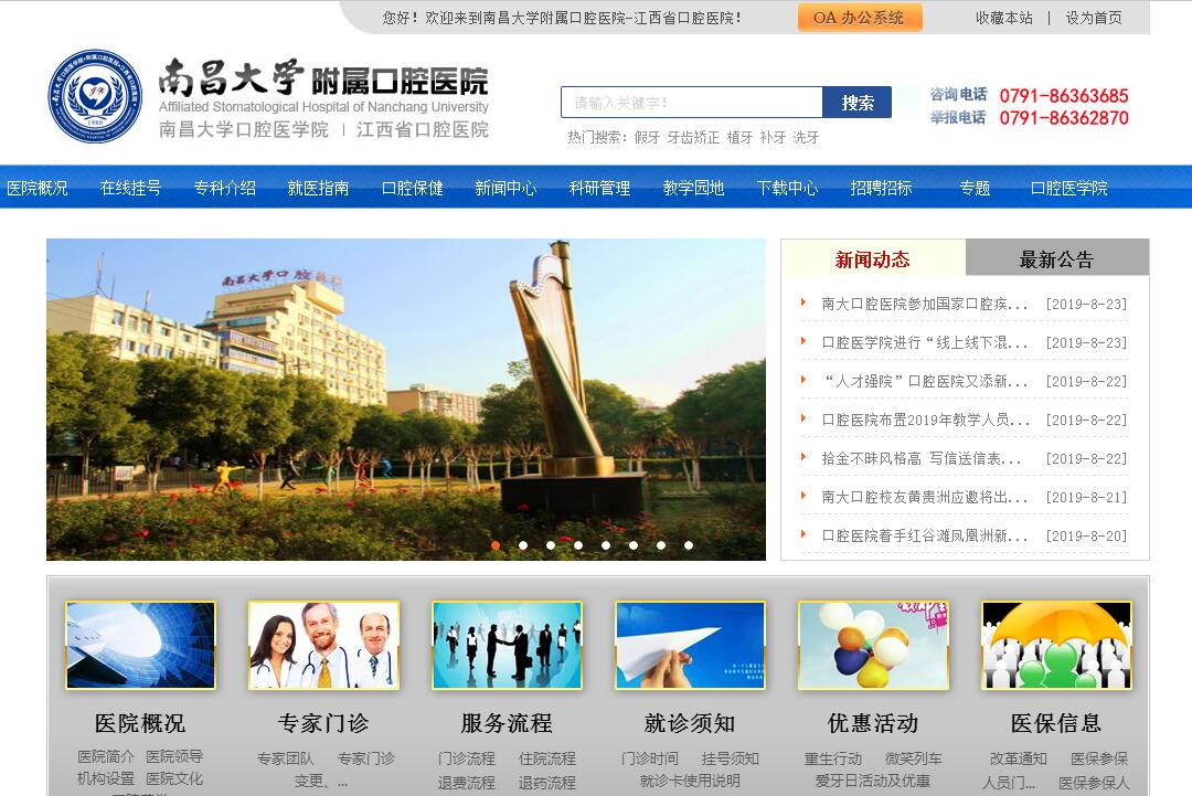 南昌大学附属口腔医院实行南昌大学口腔医学院、南昌大学附属口腔医院、江西省口腔医院、江西省口腔病研究所四位一体的管理体制,是集医疗、教学、科研、预防、保健、培训为一体的三级甲等口腔专科医院。前身系创建于1980年的江西医学院口腔医学系,2003年增名“江西省口腔医院”,2005年由江西医学院附属口腔医院更名为南昌大学附属口腔医院。医院位于江西省省会南昌,全院在职职工330余人,其中卫生技术人员260余人,副高以上技术人员78人,博士7人、博导7人,硕士137人、硕导35人,江西省“百千万人才”5人,江西省高校中青年学科带头人2人,江西省高校中青年骨干教师6人,江西省卫生系统学术和技术带头人13人,享受国务院及江西省政府特殊津贴各1人。医院是一所装备先进、设施精良、环境优美的现代化口腔专科医院,也是江西省唯一的三级甲等口腔专科医院。作为国家医师资格考试实践技能考试与考官培训基地、江西省口腔临床医学的示范基地、口腔医学人才的培养基地和口腔疾病诊疗新技术的孵化基地,医院拥有各类进口综合治疗椅140多张,拥有目前世界先进水平的多功能手术床、麻醉机、牙科种植机、口腔显微镜等设备,其中CBCT为江西省首台口腔CT,数码图像直接传输到医生椅旁,极大地方便了患者就医,拥有住院病床50张。医院设有牙体牙髓科、牙周病科、口腔粘膜病科、口腔颌面外科、口腔修复一科、修复二科、口腔正畸一科、正畸二科、口腔预防科、儿童口腔科、口腔种植科、特需门诊、综合急诊科、分门诊、麻醉科、手术室、病理科、放射科、检验科、心电理疗室、消毒供应室、技工室等23个临床与辅助科室和16个行政职能科室。年门诊量30多万人次。作为国家级口腔执业医师考试基地,医院从2001年开始承担每年的江西省医师资格口腔实践技能考试工作。作为江西省牙病防治指导组挂靠单位,医院每年承担指导全省开展牙病防治、宣传口腔健康知识等工作。口腔医学院是口腔医学一级硕士学位授予点,具有自主设置牙医学二级博士学位授予权,现有口腔内科学、口腔颌面外科学、口腔修复学、口腔正畸学、口腔预防及儿童学、口腔基础医学等6个教研室。设有口腔病研究所和口腔综合实验室,其中,口腔内科、口腔正畸科、口腔修复科被江西省卫计委授予“江西省医学领先学科”,口腔正颌外科和口腔预防科被省卫健委列入“江西省医学领先学科建设计划项目”。2014年江西省口腔生物医学重点实验室立项并开始建设。学院设有研究生、本科生、继续教育等多个教学层次。30多年来,为省内外培养了1000多名口腔医学人才。(数据截止时间2019年2月)医院承担300多项科研项目,其中国家自然科学基金9项,江西省卫计委跨世纪人才项目1项,重大技术引进招标项目5项,科技厅重大技术攻关项目2项,3项课题荣获江西省科技进步三等奖,SCI论文37篇。医院重视发展国内和国际间的交流与合作。2000年与上海交通大学口腔医学院结为姊妹院校,2004年成为以四川大学华西口腔医学院为首的中国西部口腔医学协作组成员,2014年与武汉大学口腔医学院签订对口支援协议。先后与美国、日本、澳大利亚、韩国、香港等国家和地区建立了学术交流关系。每年向美国、日本、香港等国家和地区派出多名访问学者和研修人员。1987年与日本国九州大学齿学部建立了友好校际合作关系。2016年与美国天普大学牙学院正式签订战略合作协议。举办多次全国性口腔医学学术会议,完成多项国际科研合作项目。
