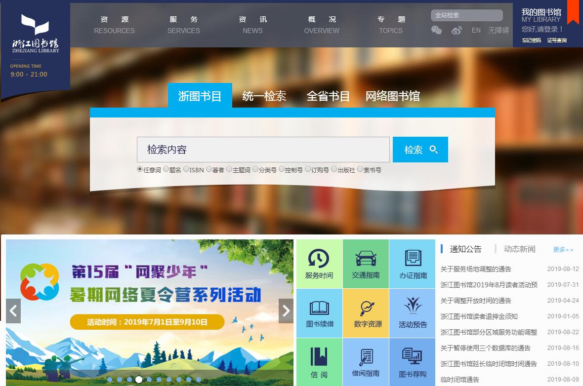 浙江图书馆是国内创办最早的省级公共图书馆之一。总馆位于浙江省杭州市西湖区,是国家一级图书馆,第一批全国古籍重点保护单位。前身为创建于1900年的杭州藏书楼,1903年杭州藏书楼扩充改建为浙江藏书楼,1909年浙江官书局并入,成立浙江图书馆。1911年接收管理文澜阁及《四库全书》。1912年孤山路馆舍白楼落成,为我国最早的公共图书馆专用建筑之一,1913年作为总馆开放。1931年大学路馆舍落成,1932年正式开放并定为总馆。1937年抗战爆发,总馆迁至南田镇(今属温州市文成县),文澜阁《四库全书》迁至贵州地母洞等地。1945年底迁回复馆,以孤山馆舍为总馆。1951年接收著名藏书家刘承幹捐赠的南浔嘉业堂藏书楼(今湖州市南浔区)及藏书。馆名几经变更,1953年确定使用“浙江图书馆”为馆名。1998年曙光路馆舍总馆开放至今。2008年增挂“浙江省古籍保护中心”牌子。2015年成立首届理事会,实行以理事会为最高决策和监督层的管理体制。浙江图书馆现有馆舍5处,以曙光路馆区为总馆,另有孤山路馆区、大学路馆区、嘉业藏书楼及德清书库馆区,馆舍总建筑面积5.51万平方米。在全省各地设有17个分馆,9个流通站。浙江图书馆馆藏文献700余万册(件),以珍贵古籍丰富、地方文献齐全为特色。其中,古籍线装书80余万册(含善本15万册);普通图书510余万册;报刊合订本95余万册;现报刊6500余种。馆藏雕版15万件。馆藏电子图书320余万册,发布数据库190余个,其中浙江家谱、地方志等特色资源库42个。注重外文文献入藏,与美国、日本、澳大利亚、韩国、俄罗斯、印度、新加坡、菲律宾、香港、台湾等国家和地区的12个图书馆保持书刊交换关系。浙江图书馆实行全年免费开放,设阅览座位1800席;开架中外文书刊145余万册,日均接待读者6000余人次;累计发放读者证61余万张;年网站点击量1086余万人次。形成“文澜讲坛”“文澜展窗”“文澜读书”“文澜社会大课堂”四大读者活动服务品牌。整合全省公共图书馆资源开通“浙江网络图书馆”,提供覆盖全省的公益性数字阅读服务,年访问量1500余万人次。推出浙江省公共数字文化移动服务平台“浙江文化通”,利用微信公众号和支付宝服务窗,在移动终端上实现文化讯息查询、书目检索、办证、数字阅读等公益便民服务。牵头联合全省11家市级图书馆和3家少儿馆,以全省整体对接第三方信用服务机构的模式,推出公共图书馆“信阅”服务,实现线上线下融合互通,促进服务均等化。浙江图书馆是全国文化信息资源共享工程浙江省分中心、浙江省视障信息无障碍服务中心、全国图书馆联合编目中心浙江省分中心,在省内积极推进文化信息资源共建共享、视障读者服务水平提升、跨地区、跨行业的书目资源共建共享和中华古籍保护计划。参与和推动区域性资源共建共享活动,是长三角公共图书馆讲座联盟、全国公共图书馆讲座联盟成员;牵头组建浙江省公共图书馆讲座、展览、信息、网络技术、视障服务联盟,组织实施浙江省公共图书馆通阅互借网络。主办综合性图书馆学情报学专业期刊《图书馆研究与工作》(CN33-1398/G2),公开发行。浙江图书馆设党政办公室、业务办公室、人力资源部、资产财务部、综合管理部、采编部、技术研发部、文献典藏部、文献借阅部、地方文献部、古籍部、数字资源部、阅读推广部、公共事务部、学术研究部等部门。