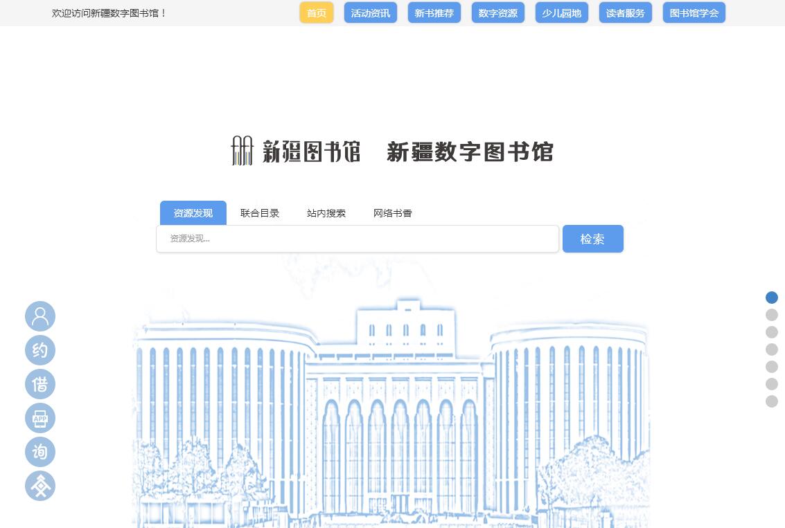 | 网站简介: 新疆维吾尔自治区图书馆是省级综合性公共图书馆,始建于1930年8月,是全疆文献信息服务中心、古籍保护中心和文化信息共享新疆分中心,是全疆图书馆行业协作协调中心。具有保存人类文化遗产,开展社会教育、传递知识信息、开发智力、文化休闲等职能作用。承担着为社会公众、党政机关、科研教育、企事业单位提供文献信息和立法决策服务的任务。自治区图书馆实行365天基本服务项目免费开放。秉承“读者至上 服务创新”的宗旨。 |