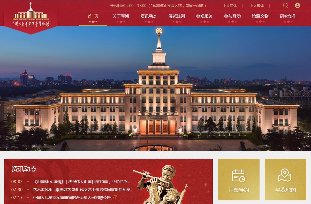 中国人民革命军事博物馆是中国第一个综合类军事博物馆,位于北京市复兴路9号。展览大楼1958年10月兴建,1959年7月建成,1960年8月1日正式开放,是向国庆10周年献礼的首都十大建筑之一。2012年9月,军事博物馆对展览大楼加固改造,2017年7月竣工。加固改造后,军事博物馆展览大楼建筑面积15.9万平方米,陈列面积近6万平方米。主楼建筑高94.7米,南北两侧各4层,楼顶装有直径6米的巨大的中国人民解放军军徽。全馆有43个陈列厅(区)。军事博物馆主要从事收藏、研究、陈列反映中国共产党领导的军事斗争历程和人民军队建设成就的文物、实物、文献、资料,以及反映中华民族五千年军事历史和世界军事史的文物、实物、文献、资料。围绕党和国家及军队的中心工作,举办各种专题性、时事性、纪念性展览。接待国内外来宾和观众的参观访问。组织开展相关的学术研究和艺术创作。组织开展与国内外博物馆之间的业务交流。下辖综合办公室、编辑研究室、宣传教育室、设计美术室、藏品征集保管室、文物保护室、信息资料室、安全保卫室、通州分馆、怀柔分馆等10个中层单位。同时还设有学术委员会、艺术委员会、文物鉴定委员会。军事博物馆馆藏文物以反映中国人民解放军军事史、中国古近代军事史和世界军事史为主。馆藏特色文物为武器、军服、证章和军事题材艺术品等。现有文物18万余件套,一级品1793件套。军事博物馆以全军各大单位调拨、个人捐献和转让等方式,对我军历史文物和中国近现代文物进行系统征集,奠定军事特色鲜明的红色大馆的文物优势地位。近年来,采取捐购结合的方式,加大对世界军品的征集,征集到极具收藏和研究价值的珍贵文物近2万件(套)。军事博物馆文物库房,建筑面积约1.8万平米,下设藏品库、珍品陈列室、总账室、摄影室、3D数据采集室、修复室、武器保养车间等功能区,配备恒温恒湿系统、环境监测系统、气体灭火系统、信息化管理系统、通讯系统、安防系统,成为集文物管理、陈列展示、文物保护、文物信息采集和安全防范功能于一体的现代化、信息化、专业化藏品库房。军事博物馆门户网站于2010年8月1日正式上线,建立了军事博物馆数字博物馆。网站设关于军博、资讯动态、展览陈列、参观服务、参与互动、馆藏文物、研究创作共7个一级栏目,对外发布军博资讯、展览预告、参观指南、文物征集、志愿者招募等信息,提供门票预约、网友留言、调查问卷等功能。为扩大展览影响力和方便观众远程参观,陆续推出中国共产党领导的革命战争陈列、新中国国防和军队建设陈列、兵器陈列、中国历代军事陈列、军事科技陈列、红色记忆——馆藏革命军事艺术作品陈列等6个基本陈列网上展馆,以及“铭记光辉历史 开创强军伟业——庆祝中国人民解放军建军90周年主题展览”网上展馆。此外,为适应移动互联网的发展形势,先后建立和开通了军博官方微博和微信公众号。2017年,以展览大楼加固改造工程为契机,军事博物馆信息化建设全面展开。利用移动互联网、物联网和大数据等先进技术,根据国家文物局智慧博物馆参考模型和技术标准,建立了“一个中心、五大平台”的信息化体系架构,即以云计算为中心、构建传播平台、服务平台、研教平台、管理平台和运行平台。开发门户网站、APP客户端、微信公众号、虚拟博物馆、票务管理、公共信息导览、智能讲解等10套应用信息系统。在数字化基础上增加智能感知、定位和互动功能,实现线上线下信息融合,通过大数据分析、信息推送等手段,为观众提供更精细化和智能化的服务。自1985年起,军事博物馆编辑出版月刊《军事史林》。期刊主要从军事历史、武器装备、军事艺术等全面反映中外军事发展历程综合性知识。