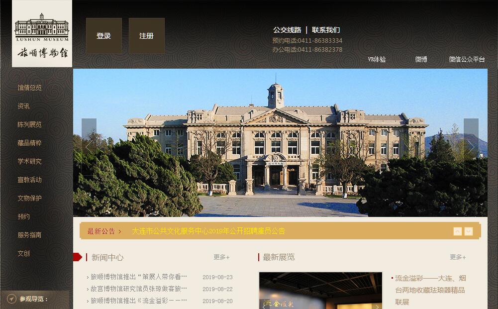 旅顺博物馆坐落于有“半部中国近代史”之称的大连市旅顺口区,是大连市属的历史艺术性博物馆,其以悠久的建馆历史、别具特色的藏品优势、庄重典雅的馆舍建筑及错落有致的庭院设计而蜚声海内外。2008年获评首批国家一级博物馆。2013年4月,实现全面向社会免费开放。旅顺博物馆前身为日本殖民统治大连时期、始建于1915年的满蒙物产陈列所。1916年定名为关东都督府满蒙物产馆,1917年4月正式对外开放。现有主馆和分馆两个建筑主体。主馆建筑为近代折衷主义风格,建筑面积6000多平方米,现为国家重点文物保护单位,其基本陈列为馆藏青铜器、陶瓷器、历代佛像、历代货币等。分馆于2000年建成,面积约5000平方米,基本陈列以大连出土文物为主,同时设有功能优良的临时展厅,每年组织专题性展览及引进外展。馆内现有文物藏品数量为6万余件,还有几十万件的文物资料,其中以罗振玉旧藏中国历代艺术精品为主要特色,近年我们又广泛征集古代日本、朝鲜文物,使馆藏逐渐具有了系列完整、特点突出的优势。依托特色馆藏,开展学术研究和专题展览活动是旅顺博物馆工作的亮点,馆内拥有一批研究、鉴定和陈列策划的专业人员,在以“大谷收集品”为主的古丝绸之路文物和罗振玉及其旧藏品以及大连本土历史文化等多领域研究上成果不断,先后出版了《旅顺博物馆藏西域文书研究》、《旅顺博物馆藏晚清奏折选》、《旅顺博物馆所藏甲骨》等多部著作,并承担了馆藏新疆出土汉文佛经残片整理与研究、馆藏罗振玉旧藏甲骨整理与研究等多项国家级学术课题。专题文物展览多次赴日本、韩国进行交流展览,馆藏佛教造像、箸文化以及晚清孙温所绘《红楼梦》画册展成为观众推崇的品牌展览,多次多地对外展出。在新的历史条件下,旅顺博物馆以“文化惠民、文化为民”为使命,不断举办精品展览,推出衍生产品,加大宣传力度,提升教育功能,尽可能合理地释放文物藏品的文化内涵,更好地担负起传播爱国主义精神、传承优秀传统文化的社会责任。
