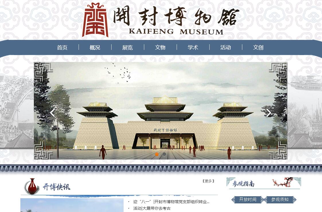 开封博物馆坐落于风景秀丽的包公湖畔,是一座集陈列展览、文物收藏、文物保护、科学研究、宣传教育为一体的地方综合性博物馆。馆藏文物80000余件,其中尤以陶瓷器、铜器、书法、绘画、石刻为特色,于2008年被评为国家二级博物馆。其藏品之丰富、质量之精湛,在全省乃至全国享有盛誉。先后被授予“全国重点博物馆”、“河南省爱国主义教育示范基地”、“市级文明单位标兵”等荣誉称号。开封博物馆建馆历史悠久,自1962年建立以来,通过博物馆人的不懈努力,逐渐形成了一支业务水平高、学术研究能力强的专业队伍。陈列展览方面,每年举办各类展览30余个,先后与故宫博物院、首都博物馆、海南省博物馆等全国各大馆进行合作,部分特色藏品如年画等还远赴美国、日本、加拿大、香港、澳门等地进行展出,获得了国内外观众的一致好评。学术研究交流方面,基于大量的文物藏品,馆内专业技术人员先后于《文物》、《考古》、《中原文物》、《华夏考古》、《中国文物报》等数十家学术刊物发表高质量论文数百篇;此外,还通过举办中国收藏文化论坛、世界客属第27届恳亲大会等,与国内外博物馆学届人士进行交流学习。非物质文化遗产保护方面,朱仙镇木版年画作为民间民俗文化,是民间工艺美术中的一支奇葩。2004年于开封市博物馆成立朱仙镇木版年画研究中心,2006年木版年画成功入选首批国家级非物质文化遗产名录,2007年有“中国民间艺术家”之称的郭太运被列为首批国家级非物质文化遗产项目代表传承人,并在馆内收徒传技,一起致力于古版年画的发掘、整理、保护、研究和传承。为促进开封市博物馆事业的继续发展繁荣及开封市国际文化旅游名城的建设,2014年3月开封市博物馆新馆正式开工建设,2018年3月对外开放。开封博物馆新馆位于开封新区五大街与六大街之间的郑开大道北侧,中意湖东临,建筑总面积54286㎡,共分为陈列区、公共服务区、藏品保管区、文物修复区、学术研究区、行政办公区、后勤设备区等七大功能区,设有贵宾室、会议室、青少年活动中心、学术报告厅、4D影院等服务设施,是一座基础设施完善的现代化博物馆。
