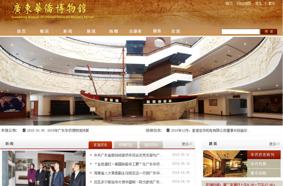 | 网站简介: 广东华侨博物馆是广东省侨办直属公益一类事业单位,是全国唯一一家省级专业华侨博物馆。1995年奠基,2002年建成,2009年11月开馆,现有藏品4000余件(套),2010年被确定为广东省中华文化传承基地。馆舍建筑面积6000平方米,陈列展览面积4200平方米。总投资4200万元,其中省财政拨款1700万元,海外侨胞、港澳同胞及社会各界捐款近1700万元,省侨办投入800万元。主题展览由广东华侨历史陈列、广东华侨民居、广东华侨博物馆建设回顾组成。 广东华侨历史陈列分为移民海外、艰苦创业、文化传承、浩气长存、情系乡梓、华侨事务六个部分,全面系统展示广东华侨历史文化,彰显海外侨胞、港澳同胞和归侨侨眷历史丰碑。同时还经常举办华侨文化艺术专题展览。广东华侨博物馆以服务国家、服务侨胞、服务社会为宗旨,力争建成全国收藏、研究华侨历史文献文物,展示华侨文化,弘扬华侨精神,传承华侨文化的重要基地,开展华侨文化交流的重要平台,提供公共文化服务的重要阵地。 |
