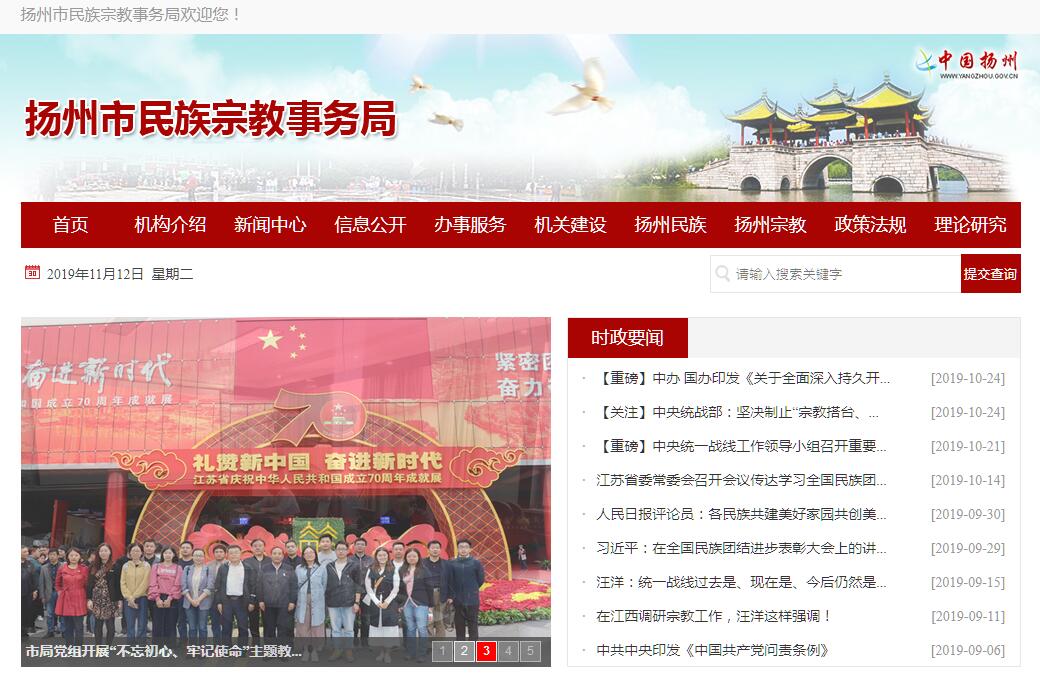 扬州市民族宗教事务局,为市政府工作部门,正处级建制。其主要职责是:(一)贯彻执行国家民族宗教法律法规和相关政策,并对我市的贯彻执行情况进行检查监督。(二)协调民族关系,维护和保障全市少数民族公民的平等地位和合法权益;办理有关落实少数民族政策的事宜。 (三)调查我市少数民族生产、生活情况;会同有关部门帮助和指导少数民族发展生产和扶持少数民族贫困户脱贫致富;筹集和争取扶持少数民族生产补助专款和专项资金,检查督促其使用情况。(四)保护公民宗教信仰自由,保护正常宗教活动的开展,保护宗教团体和宗教活动场所的合法权益。(五)引导和帮助宗教团体在宪法和法律的范围内开展工作,督促宗教团体加强自身建设,协助进行宗教人士特别是宗教界上层人士的培养考察和推荐使用工作,办理宗教团体需由政府部门协助和协调办理的各项事务。(六)依法对本市民族宗教事务进行管理和监督,协助有关部门及时处理有关民族宗教方面的突发事件;配合有关部门揭露和打击不法分子利用宗教进行的各种违法犯罪活动,抵制境外敌对势力以宗教名义进行的渗透,打击各类邪教活动。(七)牵头组织民族宗教政策法规的宣传教育,开展民族宗教理论政策的研讨和法制教育工作,做好佛学院校的思想政治和管理工作。(八)处理民族宗教方面的涉外事宜,指导宗教团体和开放宗教活动场所开展同国外和港、澳、台地区宗教界的友好往来。(九)开展民族宗教方面的调查研究,指导县(市、区)民族宗教部门的业务,协助有关部门对少数民族干部进行培养、教育和使用。(十)承办市政府交办的其他工作。