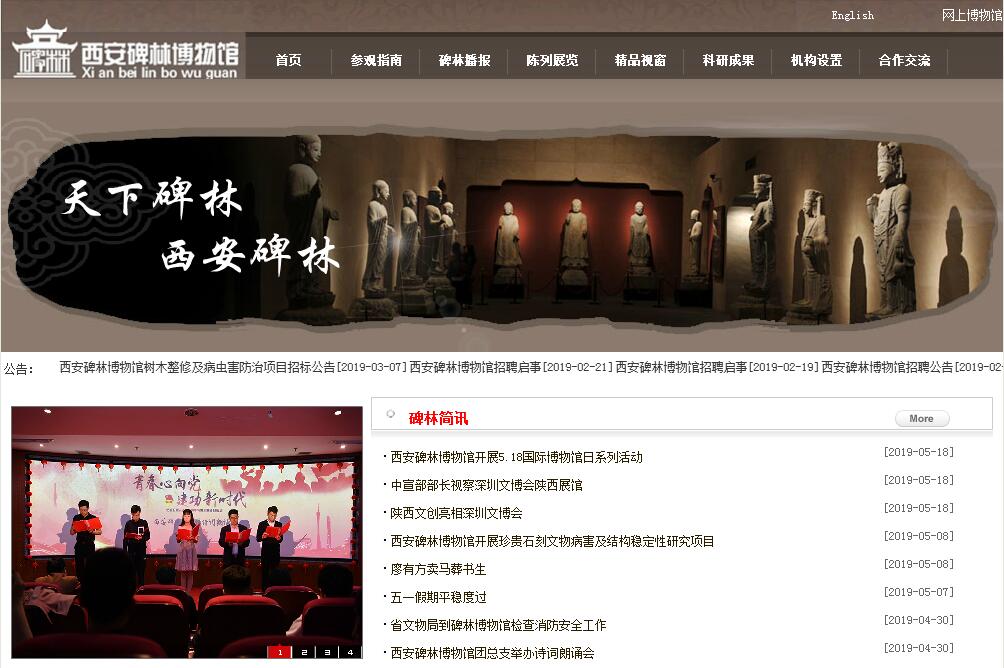 西安碑林博物馆,原名陕西省博物馆,创建于1944年。它是在具有 900多年历史的“西安碑林”基础上,利用西安孔庙古建筑群扩建而成的一座以收藏、研究和陈列历代碑石、墓志及石刻造像为主的艺术博物馆。1961年被国务院列为全国第一批重点文物保护单位。 西安碑林博物馆藏品浩瀚,书法艺术卓越,文化内涵丰富,被誉为“东方文化的宝库”、“书法艺术的渊薮”、“汉唐石刻精品的殿堂”、“世界最古的石刻书库”,是国家AAAA级旅游景点,全国18个特殊旅游景观之一。作为西安最有价值的文物古迹之一,这里每年都吸引着众多海内外游客。今天西安碑林已成为世界文化宝库中的重要组成部分,成为普及弘扬中国经典文化的重要窗口。西安碑林博物馆馆藏文物种类丰富,包括历代碑石、墓志、石刻造像、画像石等石刻文物和书法、绘画、碑拓等其它文物,尤以碑刻墓志、历代拓本为具有特色的馆藏品。收藏碑石、墓志的数量为全国之最,藏品时代系列完整,时间跨度达2000多年。馆区由孔庙、碑林、中国古代石刻艺术展三部分组成,占地面积 34667平方米。十一五以来,新建成以“长安佛韵”为主题展陈的石刻艺术馆,并荣获国家级优质工程“鲁班奖”与“十大精品”陈列奖,形成“一轴两翼”的展陈格局。