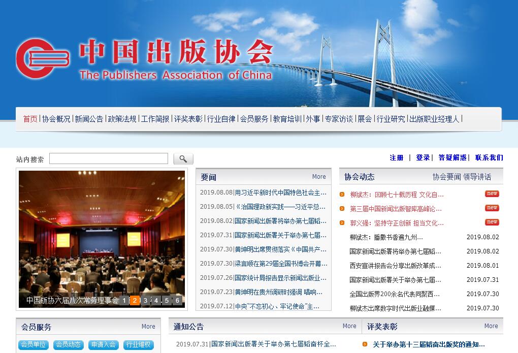 中国出版协会(简称中国版协),英文名称:The Publishers Association of China,于1979年12月20日成立。本会是中国出版界自愿结成的全国行业性社会组织,是为出版行业服务的非营利性社团法人,是中国共产党和中国政府与中国出版界密切联系的桥梁和纽带。本会的宗旨是:在中国共产党领导下,团结全国会员单位,组织出版业从业者,坚持马克思列宁主义、毛泽东思想、邓小平理论和“三个代表”重要思想,坚持科学发展观,全面贯彻执行党的路线、方针、政策,坚持出版工作为人民服务、为社会主义服务的方向,促进出版事业的发展和出版队伍的建设,维护会员单位的合法权益,推动出版业的创新、改革,推动与香港、澳门、台湾地区及国际出版界的交流与合作,为繁荣社会主义出版事业,为建设一个富强、民主、文明的社会主义中国而奋斗。本会接受业务主管单位国家新闻出版广电总局和社团登记管理机关民政部的业务指导和监督管理。本会实行单位会员制,由会员单位法定代表人代表本单位参加本会活动。经国家主管机关批准的各级各类出版发行单位(包括国有、集体、民营、合资出版发行机构),各省、自治区、直辖市等出版协会,全国性的出版教育、出版科研、出版印制、出版材料供应以及出版技术服务等与出版紧密相关的单位,承认本会章程,均可自愿申请入会。本会最高权力机构是会员代表大会。会员代表大会每届四年,因特殊情况需提前或延期换届的,须经理事会表决通过,报业务主管单位审查并经社团登记管理机关批准。延期换届最长不得超过一年。本会的业务范围:(一)组织和推动会员单位全体从业人员学习马克思列宁主义、毛泽东思想、邓小平理论和“三个代表”重要思想,以科学发展观为指导,贯彻执行党和政府的方针、政策,坚持正确的出版方向和舆论导向,发扬我国出版工作的优良传统,解放思想,实事求是,开拓进取,勇于创新,推进出版业的改革与发展,为把我国早日发展成为世界出版强国而努力奋斗。(二)协助政府有关部门进行出版队伍的职业道德教育、业务培训工作,开展出版理论研究和业务交流活动,促进出版从业者政治思想素质和业务水平的提高。(三)竭诚为读者服务,使出版者真正成为作者与读者之间联系的桥梁。(四)受政府有关部门委托,参与制订行业标准和行业发展规划。(五) 依照有关规定经批准,组织开展“韬奋出版奖”和“中华优秀出版物奖”评奖活动,促进大批优秀出版人才和优秀出版物的出现。(六)加强行业自律,增强法制观念,提高出版单位和从业者遵纪守法、恪守职业道德的自觉性。(七)遵守我国宪法、《出版管理条例》及其他相关法律、法规,维护出版者的合法权益。(八)按照我国著作权法和其他有关法规,加强出版者与著、译者的团结,尊重著、译者的合法权益。(九)贯彻“一国两制”方针,密切大陆与香港、澳门和台湾地区出版界的联系,加深与香港、澳门、台湾地区以及海外华人出版机构间的友谊,扩大交流与合作。(十)积极参与国际出版组织的活动,加强同各国出版界朋友的友好往来,增进友谊,加强交流与合作,扩大中国出版业的国际影响,维护中国出版者的合法权益。(十一) 本着平等、互利、共同发展的原则,与出版界各专业协会、学会、各地出版协会进行多方面的合作。(十二)开展为实现本会宗旨相关的其他活动。中国版协的主要任务是:①组织和推动出版工作者学习、贯彻执行中国共产党和中国政府的方针、政策,坚持正确的政治方向,发扬出版工作者的优良传统,高举旗帜,围绕大局,服务人民,改革创新,不断提高出版工作水平。②协助政府主管部门进行出版队伍的教育、培训工作,开展出版理论研究和业务交流活动。③参与制订行业标准和行业发展规划,开展专业资质认证等工作。④组织出版行业“韬奋出版奖”和“中华优秀出版物奖”评奖活动。⑤加强行业自律,组织制定和实施《中国出版工作者职业道德准则》,促进出版单位和出版工作者遵纪守法,恪守职业道德。⑥依法维护出版者的合法权益。⑦开展对国外和香港特别行政区、澳门特别行政区、台湾地区出版界的交流与合作。⑧依法开展行业服务和经营活动。根据工作需要,设立工作委员会。主管主办线装书局,并编辑出版《中国出版年鉴》等刊物。