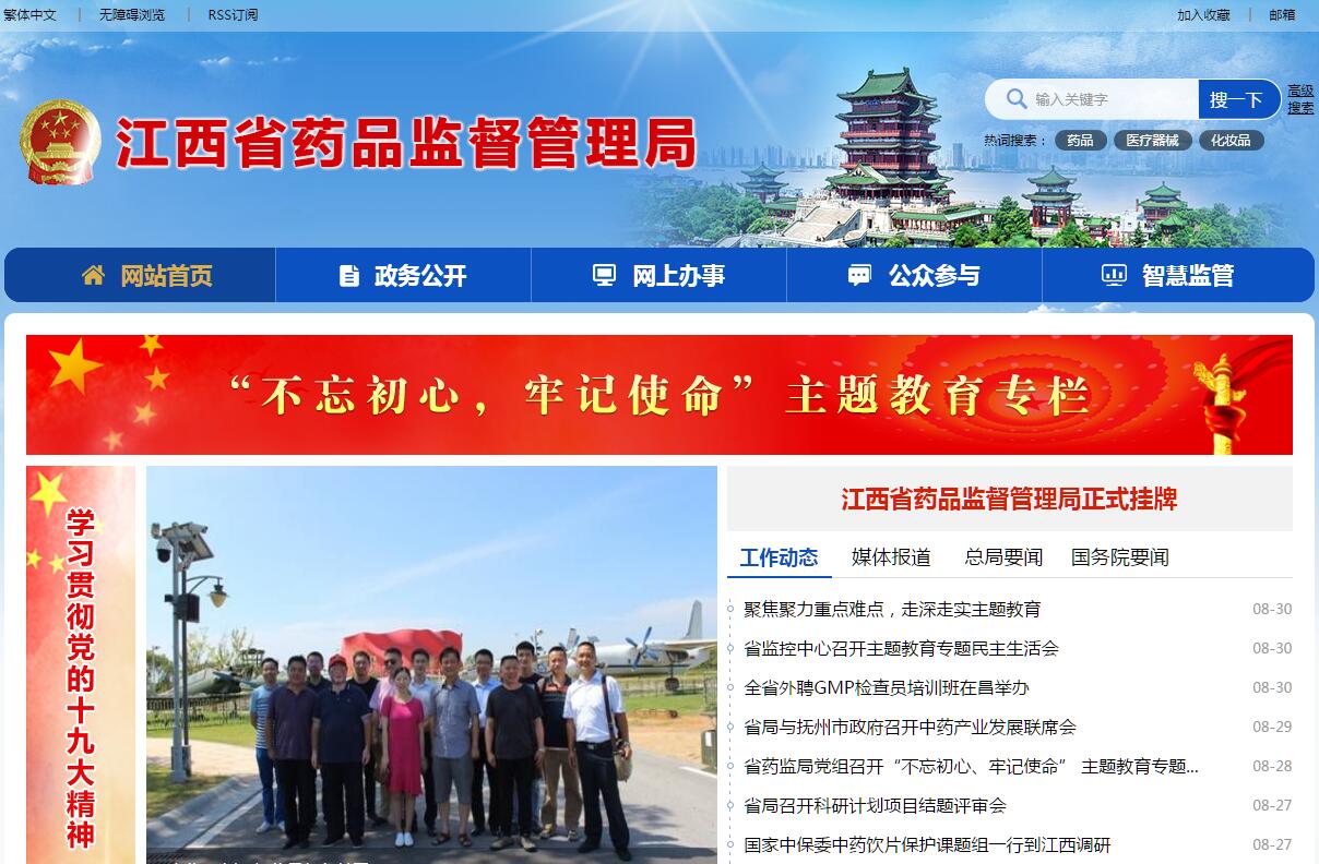 江西省药品监督管理局主要职责是:(一)负责药品(含中药、民族药,下同)、医疗器械和化妆品安全监督管理。贯彻执行国家药品、医疗器械和化妆品安全监督管理的法律法规和规章,组织起草药品监督管理相关地方性法规和政府规章草案、政策规划,并监督实施。研究拟订鼓励药品、医疗器械和化妆品新技术新产品的管理与服务政策。(二)负责药品、医疗器械和化妆品标准管理。监督实施国家药典等药品、医疗器械、化妆品标准和分类管理制度。组织制定地方中药饮片炮制规范并监督实施,配合实施国家基本药物制度。(三)负责药品、医疗器械和化妆品注册与许可管理。按权限负责药品、医疗器械和化妆品注册并监督检查,监督实施药品、医疗器械和化妆品注册管理制度。负责药品、医疗器械和化妆品生产环节的行政许可、备案,负责药品批发许可、零售连锁总部许可、互联网销售第三方平台备案。(四)负责药品、医疗器械和化妆品质量管理。监督实施生产质量管理规范、药品批发(含零售连锁)经营质量管理规范,指导实施其他经营、使用质量管理规范。(五)负责药品、医疗器械和化妆品上市后风险管理。组织开展药品不良反应、医疗器械不良事件和化妆品不良反应的监测、评价和处置工作。依法承担药品、医疗器械和化妆品安全应急管理工作。(六)负责组织实施药品、医疗器械和化妆品监督检查。组织实施检查制度,依法查处药品、医疗器械和化妆品生产及药品批发、零售连锁总部以及互联网销售第三方平台备案环节违法行为。建立问题产品召回和处置制度并监督实施,完善行政执法与刑事司法衔接机制,依职责组织指导查处其他环节的违法行为。(七)负责执业药师资格准入管理。配合实施执业药师资格准入制度,承担执业药师注册工作。(八)负责药品、医疗器械和化妆品信息化建设、宣传教育、对外交流工作。推进科技和职业化检查员队伍建设创新发展(九)负责指导市县市场监督管理部门承担的药品、医疗器械、化妆品经营和使用环节的监督管理工作。 (十)完成省委、省政府交办的其他任务。