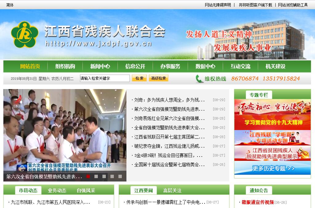 省残联于1988年经省政府批准成立,成立时为副厅级单位,1995年升格为正厅级。残联章程规定,残联组织的职能有三项,即“代表、服务、管 理”,《中华人民共和国残疾人保障法》和《江西省实施〈中华人民共和国残疾人保障法〉办法》规定:各级残疾人联合会受同级人民政府委托,开展残疾人的康 复、教育、就业、维权、文体等工作。省残联机关共设7个处室,即办公室、康复处、宣文处、教就处、组联处、维权处、机关党委 (人事处),另有一个事业单位,机关后勤服务中心。省残联下面有5个直属中心,即康复中心、就业培训中心、残疾人辅具资源中心、省残疾人综合服务中心和省残疾人文化体育管理中心。1990年,全省开始组建地市级和县级残联,现在全省11个设区市、100个县(市、区)和1592个乡(镇、街)都成立了残联。各级残联还设立了盲人协会、聋人协会、肢残人协会、智力残疾人及亲友会、精神残疾人及亲友会等专门协会,还成立了全国首 家省级残疾人企业家协会,带领和组织残疾人投身全民创业活动。专门协会是各类残疾人的组织,在残联领导下反映本类残疾人的特殊需求,做好相关工作。为重视和推动残疾人事业,全省各级政府还设立了残疾人工作委员会,为同级政府的常设议事机构,负责指导协调有 关部门开展残疾人工作,解决残疾人工作中的重大问题。残工委成员由政府有关部门的负责同志组成,主任由政府分管残疾人工作的领导同志担任。残工委秘书处设 在同级残联,日常工作由残联承担。