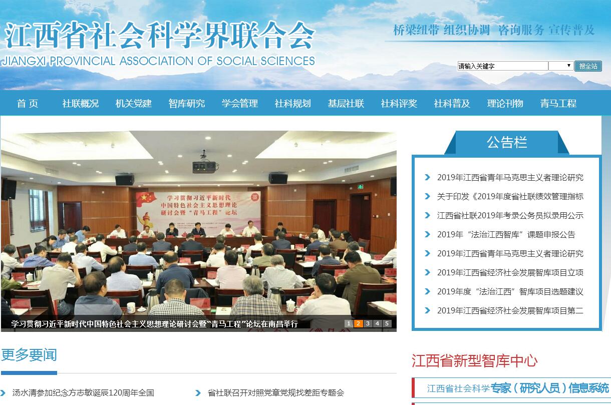 江西省社会科学界联合会,简称江西省社联,位于南昌城东绿荫掩映的青山湖畔,是中共江西省委领导下的社会科学学术性群众团体,是党和政府联系社会科学工作者的桥梁和纽带,是全省社会科学工作者的联合组织。江西省社联成立于1958年。1980年5月,省委批准恢复社联工作,并于1980年第三次社会科学工作者代表大会后,改为江西省社会科学学会联合会。1994年与江西省社会科学院实行合署办公,2003年第七次社会科学工作者代表大会时改为江西省社会科学界联合会。2009年7月,根据全省哲学社会科学事业发展大局和理顺管理体制的需要,省委决定省社联、省社科院分设。现任省社联党组书记、主席为吴永明同志。江西省社联的主要职能是:发挥“联”的优势,负责对省属哲学社会科学学术团体的业务管理及设区市、县(区)、企业社联的指导、协调、联络与服务工作;负责民办社科研究机构的管理;组织哲学社会科学学术活动与对外交流;普及社会科学知识和推广科研成果;开展全省哲学社会科学优秀成果评奖活动;表彰全省哲学社会科学先进集体和先进工作者;制定和实施全省社科规划,负责全省国家和省级社科课题的申报、管理;负责全省古籍整理、研究和出版工作;承办省委、省政府交办的其他工作。全省现有设区市社联11个、县区社联95个、高校社联27个、省属学会119个,市县区社联所属学会1160余个,专、兼职社会科学工作者近30万人。江西省社联联系着本省高等院校、党校、社科院、部队院校和党政部门研究机构等社会科学研究五路大军,具有学科齐全、人才荟萃、联系面广的综合优势。江西省社联机关参照公务员管理,内设办公室、机关党委(人事处)、学会工作与组织联络处、省社科规划办、社科普及开发管理处、智库建设与成果管理处等6个处级机构;机关后勤服务中心为省社联下属相当于正处级事业单位。江西省社联主管、主办《老区建设》(《苏区研究》)、《内部论坛》等刊物。50多年来,江西省社联的工作曾得到历届省委、省政府领导的高度关心和重视。2013年6月,省委书记强卫书记亲自主持召开全省社科界专家座谈会,与专家学者共商江西发展大计,并寄语全省社科界要“论真理、出良策、建真言,当好党和政府的思想库、智囊团”,对做好新形势下我省社会科学工作提出了殷切期望和明确方向;2013年12月,强卫书记、鹿心社省长等省四套班子主要领导,出席江西省第八次社科工作者代表大会,强卫书记作重要讲话,全省广大社科工作者深受鼓舞、倍感振奋。在中共江西省委、省政府的正确领导和省委宣传部的直接指导下,多年来江西省社联高举中国特色社会主义伟大旗帜,坚持中国特色社会主义理论体系为指导,深入贯彻落实十八大以来习近平同志的系列重要讲话精神,团结和依靠全省广大社科工作者,坚持理论联系实际,围绕我国和江西改革开放与现代化建设中的重大问题,积极组织各种理论研讨,形成了一批有较高质量的研究成果,为党和政府科学决策提供咨询服务;努力加强社会科学基础理论研究和学科建设,广泛开展国内外学术交流,促进社会科学各学科的繁荣发展;面向实际、面向社会,开展各种形式的社会科学普及活动,努力提高广大市民的综合素质;切实加强对社会科学学术团体和民间科研机构的指导、管理、协调与服务,不断增强其活力和凝聚力。省社联所做的这些工作为实现富裕和谐秀美江西,为推进理论创新,繁荣发展我省的哲学社会科学事业,发挥了不可替代的重要作用。