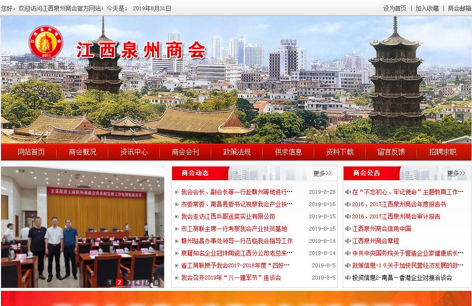 | 网站简介: 江西泉州商会是在赣创业发展的泉州籍工商企业及人士自愿组成,并经江西省民政厅依法登记注册成立,具有独立社团法人资格的非盈利性社会团体组织。主管单位为江西省商务厅。改革开放以来,一大批泉籍工商界人士先后来到江西南昌投资创业,并于2006年3月成立了南昌泉州商会。随着江西经济的快速崛起,投资环境的不断优化,越来越多的泉籍企业家将投资扩展至江西全省各地,为适应在赣各地泉商创业发展的需要,2011年9月成立了江西泉州商会。商会现有会员企业400多家,投资领域分布赣鄱大地,涉足20多个产业。商会以服务在赣泉商创业,助力江西经济发展为宗旨,坚持依法办会、团结兴会、新创强会,是政府联系泉籍企业的桥梁纽带,促进江西与福建泉州两地经济交流合作的一支生力军。 |