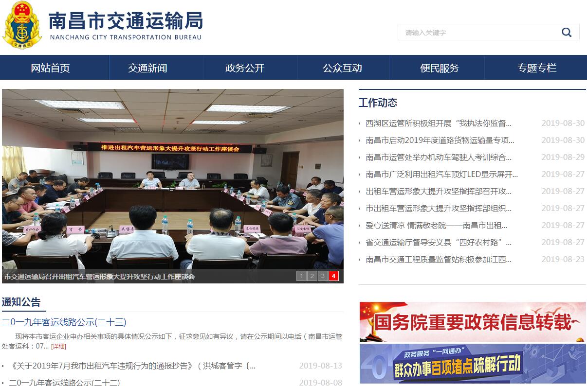根据《中共南昌市委、南昌市人民政府关于实施南昌市人民政府机构改革的通知》(洪发[2010]2号),组建“南昌市交通运输局”,对外增挂“南昌市交通战备办公室”“南昌市船舶工业管理办公室”两块牌子,为市政府正县级工作机构,2010年4月19日正式运行。其主要职责是:(一)贯彻执行国家和省有关交通行业的法律、法规和政策。结合本市实际,组织起草全市交通行业的地方性法规草案、地方政府规章草案,制定有关制度、办法及实施细则并监督实施。(二)贯彻执行国家和省各项交通运输规划、计划。结合本市实际,负责编制全市交通行业中长期总体发展规划及交通基础设施、城市公共交通、客运出租汽车、区域综合运输等专项路网、场站点设置规划并组织落实;负责制定全市客运出租车特许经营权指标投放计划;负责全市重大重点建设项目及配套设施交通影响评价方案的审查工作。(三)承担道路运输市场监管责任。对全市道路运输行业实行监管,综合平衡交通运输需求;负责全市公路客货运输、城市客运、出租车营运的行业管理和稽查;优化城乡公共交通、客货运线路网络及站场布局,审批公路客货运、城市公共交通出租车客运、驾培、维修等企业的市场准入;培训公路客运、出租车客运、货物运输、汽车维修等从业人员;参与组织协调重大节假日旅客运输和抢险物资、救灾物资、重点物资、交通战备物资运输。(四)承担水路运输市场监管责任。负责全市水运市场准入、管理和稽查;保护和管理岸线资源;按照港口规划,建设码头及配套设施,对水上客货运输进行行业管理。(五)承担交通运输行政执法监管工作。依照法定权限,组织、指导、协调并监督全市交通行业的行政执法及管理工作;规范船舶建造市场,打击非法违规造船,保障船舶的建造质量。(六)承担交通运输建设市场监管工作。拟定全市交通建设管理政策、技术标准,培育、管理交通建设市场;对全市交通建设项目、公路养护、路政运政进行行业管理;监督管理全市交通建设项目履行国家基本建设程序和招投标、工程造价、工程质量和施工安全工作。(七)指导交通运输安全生产工作。对全市经营性道路运输源头安全、水上交通安全和交通企事业单位内部安全管理进行综合指导与监督,督促法人安全责任制的落实。(八)指导交通运输行业科技和信息化工作。制定全市交通运输行业科技政策,督促行业企业引进和推广使用新技术、新材料、新工艺;负责本级交通行业信息化、智能化的规划、建设和管理工作;负责全市综合交通信息资源与公众需求信息的整合处理与协调工作。(九)负责编制交通资金预决算并监督执行。制定全市交通行业投融资政策和交通建设年度投资计划,对全市交通财政拨款、预算外资金以及其他专项资金的筹集、管理、下拨、使用进行监督;负责全市交通运输行业综合统计、预测及信息引导工作;负责交通国有资产的监管;指导检查全市交通行业财务管理和会计核算工作。(十)负责本局系统组织人事管理。对机关、事业单位人事、劳动工资和机构编制、职工培训工作进行管理;负责局直属事业单位和国有企业领导班子建设;指导交通行业人才预测、劳动社会保障工作;指导交通行业职业技能、技术教育工作;指导交通行业协会、学会工作及职工队伍建设;指导和督促全市公路、水路行业进行体制机制改革。(十一)承担南昌市国防动员委员会交通战备办公室日常工作。(十二)负责推进、指导、协调、监督本部门、本系统的政府信息公开工作。(十三)负责城市公共交通监管工作。负责制定和实施城市公共交通运营管理的政策、措施;负责对本市区域内城乡公交客运、出租汽车客运和城市间道路班车客运、旅游客运、包车客运和城市轨道客运以及相关旅游运输服务行业进行监督管理;编制本市城市公共交通线网规划和制定城市公共交通疏导方案;负责城市公共交通运营信息的调查、统计及发布,设置、调整公共交通汽车线路;负责城市公共交通运营服务质量投诉处理的监督指导;组织有关部门编制全市城市公共交通突发事件应急预案,负责对违反《南昌市轨道交通条例》等相关法规的行为进行处罚。(十四)承办市政府交办的其他事项。
