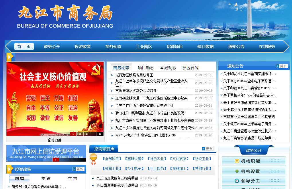 九江市商务局贯彻落实党中央关于国内外贸易、国际经济合作、利用内外资、商品流通和商贸服务工作的方针政策和决策部署,在履行职责过程中坚持和加强党对国内外贸易、国际经济合作、利用内外资、商品流通和商贸服务工作的集中统一领导。其主要职责是:(一)贯彻执行国家、省关于国内外贸易、国际经济合作、利用外资、商品流通和商贸服务业的法律、法规和方针、政策,起草相关的地方性管理规范性文件、政策措施并组织实施。(二)根据国民经济和社会发展的总体规划,拟订国内外贸易、招商引资发展战略,编制和组织实施利用外资、引进内资、国内外贸易、对外经济合作中长期规划和年度指导性计划以及相关统计、考核和奖惩工作。(三)负责指导、协调、管理全市利用外资工作。负责外商投资企业的后期管理与服务工作,监督外商投资企业执行有关法律、法规、合同情况,协调、指导、管理外商投资企业的进出口工作。(四)促进贸易增长方式转变,指导和协调贸易促进体系的建立,负责推动企业开拓多元化国际市场,执行国家进出口商品、加工贸易管理办法和进出口管理商品、技术目录,负责组织实施重要工业品、原材料和重要农产品进出口总量计划工作,负责管理机电产品、高新技术产品进出口工作,指导和协调加工贸易工作。(五)执行国家对外技术贸易、出口管制以及鼓励技术和成套设备进出口的政策,推进进出口贸易标准化工作,依法监督技术引进、设备进口、国家限制出口技术的工作。(六)负责涉及世贸组织规则的相关工作,承担组织协调反倾销、反补贴、保障措施及其他与进出口公平贸易相关工作的责任,建立进出口公平贸易预警机制,组织产业损害调查,指导协调产业安全应对工作及国外对我市出口商品的反倾销、反补贴保障措施的应诉相关工作。(七)负责统筹全市招商引资工作,负责境内外重大招商活动的组织协调和重大引资项目的协调推进工作,指导开发区(园区)的有关工作,为来浔投资者及在浔投资企业提供政策咨询和协调服务工作;负责产业招商研究;负责专业招商队伍建设、管理、考核。(八)参与区域经济合作的组织协调工作,负责驻浔商会、驻浔办事机构和我市驻外商会、驻外办事机构的相关协调服务工作,指导市政府驻外机构引进资金和经济协作业务工作,负责对口支援的组织实施工作。(九)负责对外经济合作工作,指导和推进本市企业在境外投资开办企业(金融企业除外),指导和推进对外工程承包、外派劳务合作和境外就业等,负责牵头外派劳务和境外就业人员的权益保护工作,负责归口管理对外援助、接受国际多双边无偿援助及赠款,负责有关国际组织与我市经济技术合作交流事务。(十)负责拟订开拓市场、促进消费的政策措施,提出培育商贸流通大企业、促进商贸流通中小企业发展的政策建议,推动流通标准化和连锁经营、特许经营、物流配送、电子商务等现代流通方式的发展。(十一)负责组织实施重要商品市场调控、商品流通、餐饮服务的管理工作。建立健全生活必需品市场供应应急管理机制,监测分析市场运行、商品供求状况,负责重要商品的储备管理工作。(十二)负责城乡商贸统筹发展工作,指导大宗产品批发市场规划和城乡商业网点规划,承担城乡统筹商贸网络建设工作,推进城乡市场体系建设。(十三)承担牵头协调整顿和规范市场经济秩序工作。拟订规范商业领域市场运行、市场秩序的政策措施,并组织实施。推动商业领域信用体系建设,指导商业信用销售,建立市场诚信公共服务平台。(十四)负责商贸流通行业监督管理。按有关规定对拍卖业、旧货、商业特许经营、再生资源回收利用、汽车销售、二手车流通、报废汽车等行业进行管理;按有关规定对成品油流通进行监督管理。(十五)负责商贸流通与外地经济合作,负责市内、本市外出、外地来浔举办的大型商贸流通展会的统筹和协调工作,指导、监督、规范商贸流通各类促销活动。(十六)负责推动商贸流通科技信息化建设和行业节能减排,会同有关部门管理商贸流通各类业务资金、专项基金,组织、指导商贸流通业、餐饮服务业职工技能培训和有关特殊工种职业技能鉴定。(十七)负责研究拟定我市会展业发展的行业规划、政策、规章并组织实施;负责全市性会展活动的调研论证、项目审核、资质审验、监督管理及统计分析汇总工作;负责全市性会展业的行业管理工作;负责以市委、市政府名义主办或承办的大型会展活动(包括会议、展览、节庆等)的调研论证、评估审核、协调管理工作;负责会展行业及相关产业发展研究。(十八)明确安全生产监督管理职责。从行业规划、产业政策、法规标准和行政许可等方面加强商务领域安全生产工作;配合有关单位做好商务领域安全生产工作,重点做好大型商场、大型市场、成品油流通、餐饮业、住宿业等行业安全生产管理;指导督促有关企业贯彻执行安全生产法律法规,加强安全生产管理,落实安全防范措施。(十九)负责市扩大开放工作领导小组办公室日常工作。(二十)负责监督归口管理的市国有商业资产的运营;指导下属市集体商业企业的生产经营。(二十一)承办市政府交办的其他事项。