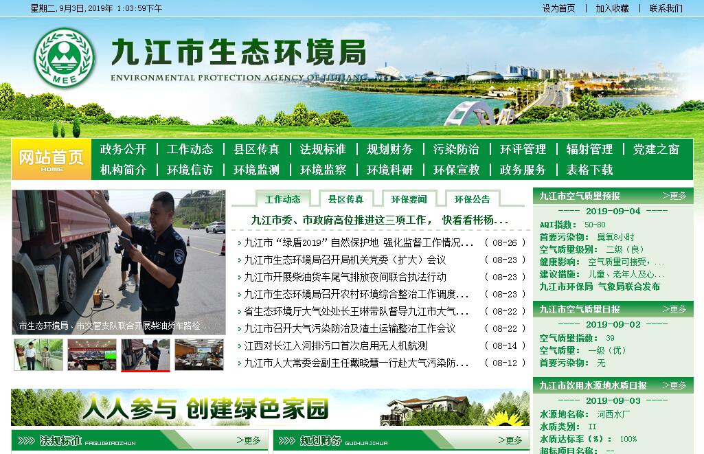 九江市生态环境局的主要职责是:(一)贯彻执行国家和省环境保护的法律、法规和方针、政策。(二)制定全市环境保护规范性文件并组织实施。审核城市总体规划中的环境保护内容,组织编制全市环境功能区划,组织拟订饮用水水源地环境保护规划并监督实施,参与拟订全市主体功能区划。(三)承担落实全市减排目标的责任。组织制定主要污染物排放总量控制和排污许可证制度并监督实施,负责水污染物排放许可证审批和发放,落实国家、省下达的污染物总量控制指标,督查、督办、核查各县(市、区)污染物减排任务完成情况,实施环境保护目标责任制、总量减排考核并公布考核结果。(四)贯彻执行并组织实施国家有关大气、水体、土壤、噪声、固体废物、有毒化学品及机动车等污染防治的法律法规和规章,贯彻执行国家、省环境质量和污染物排放标准。(五)负责全市大气、水体、土壤等环境保护工作,监督管理全市废水、废气、废渣、粉尘、恶臭、放射性物质、有毒化学品以及噪声、振动、电磁辐射等污染防治工作。(六)调查处理重大污染事故和生态破坏事件。受市人民政府委托协调处理市际环境污染纠纷,处理市内跨行政区域的污染纠纷。组织开展全市环境执法检查活动。(七)负责全市建设项目的环境管理工作,组织全市环境质量状况调查和区域环境质量评价。(八)负责全市环境监测、环境统计、环境信息工作,建立环境监测制度,组织建设和管理市级环境监测网,组织全市环境质量监测和污染源监督性监测,编报九江市环境质量报告书,定期发布城市和流域环境质量状况。(九)监督管理全市自然环境保护和农村生态环境保护工作,指导城乡环境综合整治,指导全市生态示范区和生态农业建设。(十)组织环境科学研究,管理环境科技成果,跟踪国内外最新环境保护科技动态,吸收、消化实用科技成果,推动环境科学技术进步,负责环保产品认证的管理工作。(十一)指导全市环境保护队伍建设,负责组织开展全市环境保护宣传教育工作。(十二)承办市人民政府交办的其他事项。