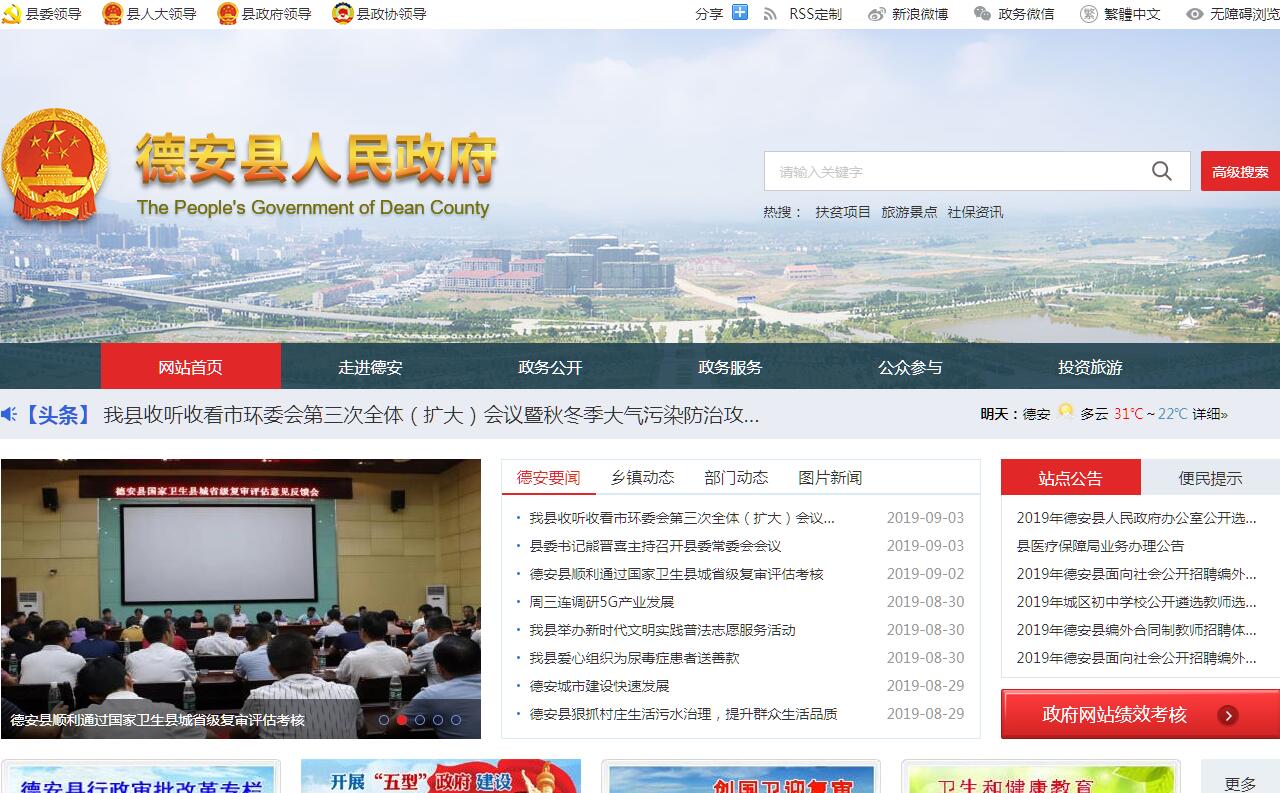 德安县地处江西省北部,九江市南部,南浔线中段,东接共青城市,南邻永修县,西毗武宁县,北接瑞昌市、柴桑区,全县总面积863.0平方公里。德安县是江右陈氏发源地。德安县获得国家卫生县城、国家园林县城、江西省卫生县城、江西省园林县城、江西省创建文明县城、工作先进县等殊荣。德安县区位优势明显,交通十分便利。京九大动脉、昌九城际铁路、福银高速公路、105国道寄城而过、306国道穿越西北部的车桥镇。县城距南昌机场65公里、距九江庐山机场25公里、距九江港48公里,福银高速将德安县城与两场一港连成一线。德白公路、林白公路纵贯城乡,村级道路建设不断升级,村级水泥路面改造正在全面启动并加紧实施中,德安已经形成了对外四通八达、对内纵横交错的交通网络。2017年,全县完成生产总值112亿元,增长9.1%。其中:第一产业完成增加值7.8亿元,增长4.5%;第二产业完成增加值73.9亿元,增长9.0%;第三产业完成增加值30.3亿元,增长10.5%。三次产业结构由2016年的6.0:67.2:26.8调整为6.9:66.0:27.1。在第三产业中交通运输仓储和邮政业、批发和零售业、住宿和餐饮业、金融业、房地产业、营利性服务业及非营利性服务业增加值分别增长9.2%、13.8%、9.7%、25.0%、11.7%、13.0%和6.0%。2019年3月,被确定为第一批革命文物保护利用片区分县名单。