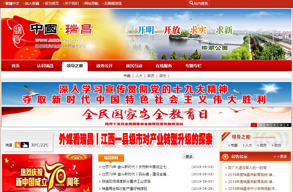 | 网站简介: 瑞昌,寓意“瑞祥昌盛”,为江西省九江市下辖县级市,由江西省直管,九江市代管。瑞昌位于江西省北部偏西,九江市西部,长江中下游南岸,北襟长江“黄金水道”,东邻柴桑区,南接德安县、武宁县,西界湖北省阳新县,北与湖北省武穴市隔长江相望, 交通便捷,信息灵通,史有“三省通衢”之称瑞昌历史悠久,早在新石器时代就有先民定居。于唐建中四年(783)始设赤乌场,五代南唐升元三年(939)升场为县,定名瑞昌,历时一千余年均为县级建制。瑞昌总面积1442平方公里,总人口45.6万(2012年),下辖21个乡(镇、场、街道)。瑞昌居民共有18个民族,其中汉族398594人,占总人口的99.94%。瑞昌是“中国青铜冶炼文化”发祥地,铜岭遗址是最早的世界采铜冶铜遗址,距今约3300年;瑞昌剪纸和竹编被列入国家级非物质文化遗产名录,是“中国民间艺术之乡”;传统文化和地方文化丰富多彩,交相辉映。1989年12月20日经国务院批准,瑞昌撤县设市,为江西省辖县级市,由九江市代管。2019年3月,被确定为全国第一批革命文物保护利用片区分县名单。 |