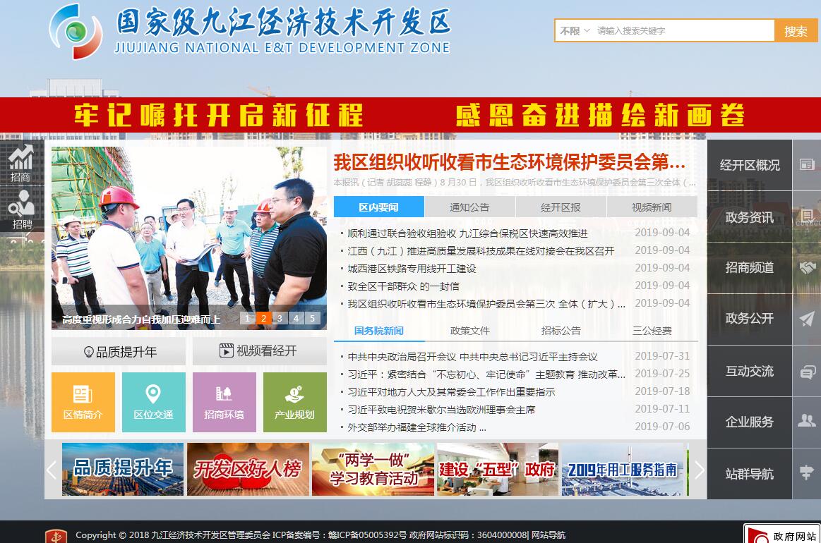 九江经济技术开发区成立于 1992年,2010年3月晋升为国家级经济技术开发区。我区现管理范围约80平方公里,辖1乡2场3街办,下设5园区(石化园区为虚管),总人口约20万。1.经济发展情况。近年来,我区认真落实国家、省、市各项决策部署,坚持“产业带动、项目推动、创新驱动、港城联动”发展思路,力争用五年实现工业总量和财政收入两个倍增。2018年,我区完成工业主营业务收入1149.9亿元,增长11%;财政总收入112.8亿元,增长12.7%;固定资产投资增长11.5%;实际利用外资2.9亿美元,增长10.28%。综合实力位列全省国家级经开区第一方阵前列。曾先后荣获中国产业园区创新力百强、国家知识产权试点园区、全国青年创业示范园区等荣誉。2.规划建设情况。实行“一区多园”发展模式,总规划面积72.7平方公里,其中九江出口加工区5.9平方公里,城西港区51平方公里,汽车工业园5.8平方公里,科技工业园10平方公里。此外,还建有国家级恒盛科技园、九江新兴产业“双创”示范基地、九江产业研究院等创新创业平台,其中恒盛科技园综合实力位居全国1600多家孵化器36强。建区以来,累计投入200多亿元用于园区开发建设,完成开发面积从最初的1.8平方公里扩大到50平方公里,其中九江出口加工区成为江西省首批生态工业园区,九江综合保税区正式获批;汽车工业园集汽车零配件及高新技术产业于一体,正在实施园区转型;科技工业园致力发展科技创新和现代服务业;城西港区是沿江开放开发的主战场,已成为江西融入长江经济带建设的桥头堡。3.产业聚集情况。建区以来,先后引进北汽集团、上港集团、中船重工、生益科技、清华同方等50多家上市公司来区投资,陆续建成巨石玻纤、北汽昌河、艾美特电器、志高空调、铨讯电子、瑞智机电、杭氧制氧机、中船海洋装备、上港码头等各类企业1000余家,其中规模以上工业企业159家,已基本形成电子电器、新材料、新能源、高端装备制造为主导的产业发展格局,即以生益科技、艾美特电器、TCL空调为龙头的电子电器首位产业,以巨石玻纤为龙头的新材料产业、以中部LED产业园为龙头的新能源产业,以中船海洋装备产业园为龙头的高端装备制造产业,主导产业占全区总产值超过90%,产业集聚效应明显。4.城市建设情况。加速港城一体、产城融合发展步伐,积极探索一条符合开发区实际、特色鲜明的产城融合新路径。近年来,每年平均实施城建项目60个以上(不含社会投资项目),城市建设快速发展,城市功能品位迅速提升。培育发展城市经济,九江国际汽车城、九江现代综合大市场、大润发广场、联盛快乐城等一批现代商贸项目陆续建成开业;集聚了柴桑国际、长江国际、九鼎物流、邮储银行九江分行、招商证券九江营业部等一批总部经济、现代物流、金融保险项目。大力改善人居环境,新建了柴桑春天、观澜盛世、半岛一品等一批精品住宅小区,加大长江、八里湖、龙开河等周边生态景观廊道建设。围绕“水美、岸美、产业美、环境美”的目标,投入12.4亿元实施12个项目,打造了独具特色的长江“最美岸线”。5.园区配套情况。坚持把园区当城区来打造,园区公交物流、中介服务、餐饮购物、休闲娱乐等生产性、生活性配套设施日益完善,园区企业发展环境更加优越,企业员工生活更加丰富多元、方便快捷。建有双创基地、电子产业园、光电产业园等专为产业集聚发展配套的标准厂房近80万平方米,企业落户即可生产;园区三大污水处理厂日处理能力达4.5万吨,供水、电力、燃气、通讯等设施均可满足企业发展需求;建设保障性住房近200万平方米,基本实现“只要在开发区就业创业,就能安居乐业”目标;新建市双语实验学校、鹤湖学校、出口加工区学校、港城学校等多所九年一贯制学校,目前全区接纳务工人员子女入学2000多名;新建区人民医院,与市第一人民医院开展紧密型医联体建设,广大群众和企业职工享受到更加优质的医疗卫生服务。6.要素保障情况。长期以来,我区致力于为入园企业提供生产要素保障,尤其在破解企业发展过程中的政务服务、资金短缺、土地制约、用工不足等难题方面摸索出一条具有自身特色的新路子,助推企业转型升级的作用突显。认真落实省市“降成本、优环境”政策措施,2018年为企业降低成本10.2亿元。创新开展“企业评园区、园区评部门”活动,大力提升服务水平和办事效率。盘活闲置土地6000余亩,为重大产业项目落户提供用地支持。做好融资保障服务,利用“财园信贷通”等方式,为园区企业解决融资难题。实施企业用工配送制度,拓宽省际劳务合作平台,去年共为TCL空调、铨讯电子、中浩纺织等企业招工2.3万人。