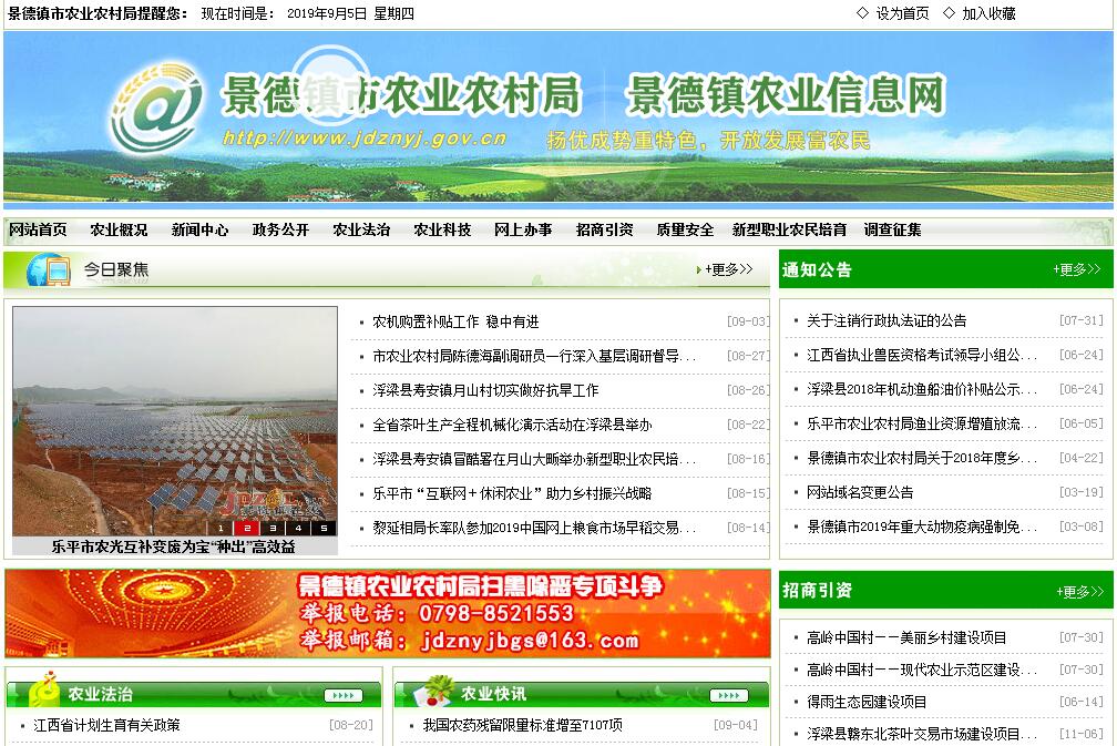景德镇市农业农村局主要职责:(一)在全市经济社会发展总体规划的框架内,拟订农业和农村经济发展政策、发展战略、中长期发展规划,经批准后组织实施。(二)研究拟订农业产业政策,引导农业产业结构的合理调整,农业资源的合理配置和农产品品质的改善。组织农业各产业的规范性文件的起草工作,推进农业依法行政。(三)研究提出深化农村经济体制改革的意见,指导农业社会化服务体系建设和农村合作经济组织、农民专业合作社的建设,指导农村集体经济组织的资产、财务管理,监督管理减轻农民负担工作。指导农村土地承包、耕地使用权流转和承包纠纷仲裁管理,参与农村综合改革和社会事业发展工作。(四)组织落实促进粮食、蔬菜、茶叶等主要农产品生产发展的相关政策措施,指导粮食、蔬菜、茶叶等主要农产品生产。会同有关部门编制农业项目规划,提出相关支持农业发展的项目安排意见,组织、指导和监督项目实施。编报部门预算并组织执行。组织协调菜篮子等工程和农业生产资料市场体系建设,预测并发布农业各产业产品及农业生产资料供求等农村经济信息,承担农业防灾减灾责任,指导农业紧急救灾和灾后生产恢复。(五)制订农业科技、教育、技术推广的规划;组织重点科研课题的技术攻关和重点科研成果的鉴定、推广;指导和协调农业服务体系的建设,研究发展开放型农业、农村休闲农业和乡村旅游农业,拟定并组织实施具有农业特色的旅游项目。(六)拟订促进农业产业化经营和农产品加工业发展政策、规划并组织实施。指导农产品加工业结构调整、技术创新和服务体系建设。组织农业产业化龙头企业监测和评定工作。(七)负责“三品一标”(无公害、绿色、有机农产品及农产品地理标志)申报认证工作,组织制订地方产品的质量技术标准,协同有关部门制订其它产品的技术标准;会同有关部门指导农业标准化、规模化生产,促进农业产前、产中、产后一体化发展,负责主管农业产品和化肥、农药、种子、饲料等有关农业生产资料的质量监测、鉴定和监督管理;组织监督农业方面的国家、行业标准的实施。(八)负责农业重大动植物疫病和农业病虫害防治。组织实施动物和农业植物防疫、检疫的法律法规及相关政策,指导动物和农业植物防疫、检疫体系建设。组织实施动物和农业植物的防疫、检疫工作;负责兽医管理、兽药的药政管理工作;负责市内生产农药品种的登记报审工作;负责渔政管理、渔港监督、渔船检验工作;负责屠宰场、市场检疫的监管工作;负责全市生猪定点屠宰监督管理工作。(九)组织农业资源区划工作,指导农用地、渔业水域、草山草坡、宜农滩涂、宜农湿地以及农业生物物种资源的保护和管理,负责水生野生动植物保护工作。指导实施耕地及基本农田质量保护与改良,依法管理耕地质量。(十)制订农业生态建设规划并组织实施。指导农村可再生能源综合开发与利用,指导农业环境保护、农业农村节能减排及农业面源污染治理有关工作。划定农产品禁止生产区域,指导农业生物质产业、生态农业、循环农业等的发展。负责渔业水域生态环境和渔业资源的保护工作。负责农业植物新品种保护和农业转基因生物安全监督管理。(十一)组织开展国际国内农业经济技术交流与合作;负责农业涉外的有关事宜,组织开拓国际农产品市场。(十二)负责农业机械化行业管理。负责农机监理和实验鉴定,宏观指导农牧渔业机械的使用与维修管理以及渔业机械、船舶机械的生产管理。(十三)负责全市农垦事业管理工作。(十四)指导局属事业单位的工作及局属企业改革,监督局属企业国有资产保值增值;按照权限管理局属单位人事、劳动工资、机构编制工作;指导有关社会团体为农业经济发展服务。(十五)承办市委、市政府交办的其他工作。