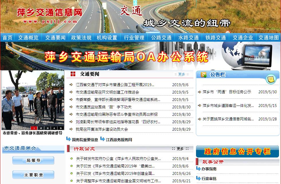 萍乡市交通运输局是萍乡市人民政府主管全市交通运输行业的职能部门,其主要职责是:(一)贯彻执行国家和省有关交通运输的法律法规和政策,拟订有关地方性政策措施。在全市经济社会发展总体规划的框架内,拟订全市公路、水路等行业规划、政策、标准并组织实施。参与拟订物流业发展战略和规划,拟订有关具体办法并监督实施。指导公路、水路行业有关体制改革工作。(二)承担公路、水路运输体系的规划协调工作,在全市经济社会发展总体规划的框架内,组织编制公路、水路运输体系规划,指导公路、水路运输枢纽管理。(三)承担道路、水路运输市场监管责任。组织制定道路、水路运输有关具体办法和运营规范并监督实施。指导城乡客运及有关设施规划和管理工作,指导出租汽车行业管理工作。负责汽车运输、河流运输及航道有关管理工作。(四)负责水上运输的行业管理,承担水上交通安全监管责任。(五)负责提出公路、水路固定资产投资规模和方向、市财政性资金安排意见,按市政府规定权限审批、核准全市规划内和年度计划规模内固定资产投资项目。拟订公路、水路有关规费政策并监督实施,提出有关财政、土地、价格等政策建议。(六)承担公路、水路建设市场监管责任。拟订公路、水路工程建设相关政策、制度和技术标准并监督实施。组织协调公路、水路有关重点工程建设和工程质量、安全生产监督管理工作,指导交通运输基础设施管理和维护,承担有关重要设施的管理和维护。(七)指导公路、水路行业安全生产和应急管理工作。按规定组织协调重点物资运输和紧急客货运输。负责全市国道及重点干线路网运行监测和协调,承担国防动员有关工作。(八)指导交通运输信息化建设,监测分析运行情况,开展相关统计工作,发布有关信息。指导公路、水路行业环境保护和节能减排工作。(九)负责公路、水路国际合作,开展与港澳台地区的交流与合作。(十)承办市人民政府交办的其他事项。