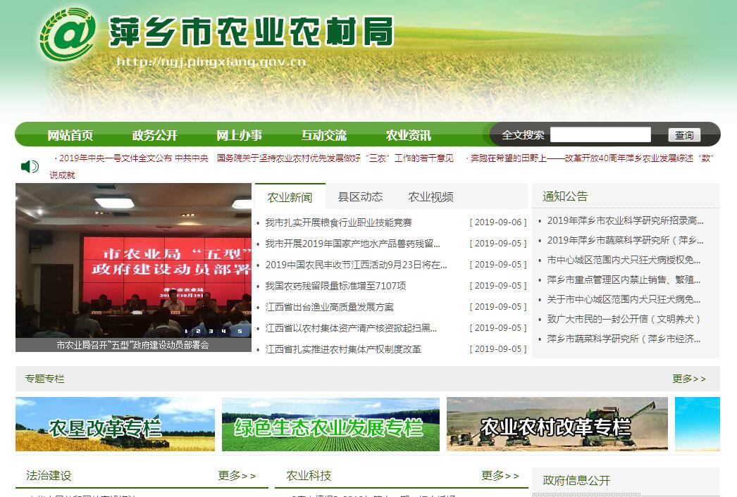 萍乡市农业农村局主要职责:(一)贯彻执行国家和省有关种植业、畜牧业、渔业、农业机械化、农垦等农业产业(以下简称农业)和农村经济发展的方针、政策、法律、法规规章;拟订全市农业和农村经济中长期发展规划并指导实施。参与涉农的财税、价格、金融保险、农产品进出口等政策制定,拟订农业和农村经济发展的有关政策措施,推进农业依法行政。(二)贯彻落实深化农村经济体制改革和稳定完善农村基本经营制度,指导农村土地承包、耕地使用权流转和承包纠纷仲裁管理。指导农村集体经济组织的资产、财务管理,监督减轻农民负担和村民筹资筹劳管理工作。指导、扶持农业社会化服务体系、农村合作经济组织、农民专业合作社和农产品行业协会的建设与发展。参与农村综合改革和社会事业发展工作。(三)拟订促进农业产业化经营和农产品加工业发展规划并组织实施。组织农业产业化龙头企业监测和评定工作,组织农业产业化发展及龙头企业运行情况统计工作。组织实施农产品品牌战略工作,提出促进主要农产品流通与出口的政策建议,培育、保护和发展农产品品牌。指导农产品加工业结构调整、技术创新和服务体系建设。会同有关部门指导农业标准化、规模化生产,促进农业产前、产中、产后一体化发展。(四)组织落实促进粮食等主要农产品生产发展的相关政策措施,指导粮食等主要农产品生产,引导农业产业结构调整和产品品质的改善。会同有关部门编制农业项目规划,提出相关支持农业发展的项目安排意见,组织、指导和监督项目实施。编报部门预算并组织执行。(五)拟订农业科研、农技推广的规划、计划,组织农业科研、技术引进、成果转化和技术推广工作,指导农技推广体系改革与建设。负责农业植物新品种保护和农业转基因生物安全监督管理。(六)组织农业资源区划工作,指导农用地、渔业水域、草山草坡、宜农滩涂、宜农湿地以及农业生物物种资源的保护和管理,负责水生野生动植物保护工作。拟订耕地及基本农田质量保护与改良政策并指导实施,依法监测管理耕地质量。负责新开垦耕地质量综合评价和基本农田保护区监督管理。(七)管理农业和农村经济信息,监测分析农业和农村经济运行,承担相关农业统计工作。发布农业和农村经济信息,指导农业信息服务。拟订农业和农村经济信息体系、农产品市场体系建设与发展规划并组织实施。(八)承担农产品质量安全的监督管理工作。依法实施符合安全标准的农产品认证和监督管理。承担指导农产品检验检测体系建设和机构考核工作。组织农产品质量安全监测管理工作。组织农产品安全的事故调查处理和突发事件的应对工作。指导实施农业转基因生物安全评价标准和技术规范,负责农业转基因生物安全监督管理。(九)依法开展农作物种子(种苗)、草种、种畜禽、农药、兽(渔)药、饲料、饲料添加剂、兽医医疗器械和有关肥料的监督管理。会同有关部门监督实施有关农业生产资料的国家标准。依法负责渔船、渔机、网具的监督管理。指导农业机械化发展和农机安全监理。(十)负责农作物重大病虫害防治。组织实施动物和农业植物防疫、检疫的法律法规及相关政策。指导动物和农业植物防疫、检疫体系建设,组织、实施、监督动物和农业植物的防疫、检疫工作,及时报告和发布疫情并组织指导扑灭。组织农业植物检疫性有害生物普查。承担兽医医政、兽药药政药检工作。(十一)制订农业生态建设规划并组织实施。指导农村可再生能源综合开发与利用,指导农业环境保护、农业农村节能减排及农业面源污染治理有关工作。划定农产品禁止生产区域,指导农业生物质产业、生态农业、循环农业等的发展。负责渔业水域生态环境保护和污染事件监管工作。负责农业生物物种管理。组织开展旅游休闲农业工作,拟订旅游休闲农业发展规划并组织实施。组织协调“菜篮子”工程的有关工作。(十二)承担农业防灾减灾的责任。监测、报告、发布农业灾情,组织种子、化肥、农药、兽(渔)药、疫苗、农用柴油等救灾物资储备和调拨,提出生产救灾资金安排建议,指导紧急救灾和灾后生产恢复。(十三)会同有关部门拟订农业农村人才队伍建设规划并组织实施,承担农村劳动力转移就业培训工作,参与实施农村实用人才培训工程。指导农业教育和农业职业技能开发工作。会同有关主管部门依法实施农业农村人才专业技术资格和从业资格管理。(十四)组织开展农业贸易促进和有关国际国内经济、技术交流与合作。组织开发农产品国际市场。承担农业涉外的有关事宜。(十五)承办市人民政府交办的其他事项。