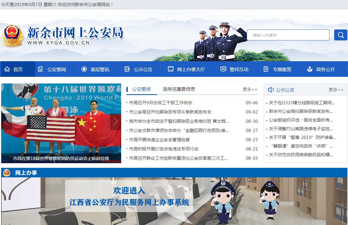 新余市公安局为新余市人民政府主管公安工作的工作部门。其主要职责是:(一)贯彻执行国家的法律、法规和公安工作的路线、方针、政策;研究拟订全市公安工作的规定和实施办法;对全市公安机关实施组织领导和指挥;负责对全市公安工作的部署、指导、监督和检查职责。(二)掌握影响稳定、危害国内安全和社会治安情况,分析形势,制定对策。(三)组织实施并指导全市公安机关侦查工作,组织、协调处置重大案件、治安事件、治安事故和重大群体事件、骚乱。(四)组织实施并指导全市公安机关依法查处违反治安管理行为,依法开展治安行政管理工作,指导、监督全市公安机关治安保卫工作。(五)组织指导出入境和外国人在我市境内居留、旅行的有关管理工作,组织指导全市公安外事工作。(六)组织实施并指导、监督全市消防和警卫工作,对武警部队执行公安任务及相关业务建设实施领导和指挥。(七)组织实施并指导全市维护道路交通安全、交通秩序以及机动车辆、驾驶人员管理工作。(八)组织实施并指导、监督全市公共信息网络的安全保卫工作,负责信息安全等级保护工作的监督、检查、指导。(九)指导、监督全市公安机关依法承担的执行刑罚工作,组织实施并指导、监督全市看守所、治安拘留所、强制戒毒所的管理工作,规划和指导全市监所建设。(十)组织实施并指导全市公安法制建设;指导、检查、监督全市公安机磁执法活动;负责管理劳动教养对象的审批和有关劳教对象申诉案件的受理工作。(十一)组织实施并指导全市公安机关开展禁毒和缉毒工作,承担市禁毒委员会办公室的日常工作。(十二)组织、指导、协调对全市恐怖活动的防范、侦察、处置工作。(十三)组织实施全市公安科学技术工作,规划公安指挥系统、信息技术、刑事技术和技术侦察建设。(十四)拟定并组织落实全市公安机关被装、装备、经费的配备标准和制度。(十五)指导全市公安政治工作和队伍建设;组织实施并指导、管理全市公安宣传、教育、训练工作;按规定权限管理干部人事工作。(十六)制定全市公安队伍监督管理工作规章制度,分析队伍状况,组织实施并指导全市公安机关督察工作;按规定权限实施对干部的监督;查处或督办公安队伍违纪案件;指导全市公安队伍思想作风、工作作风建设。(十七)承办市人民政府交办的其他事项。