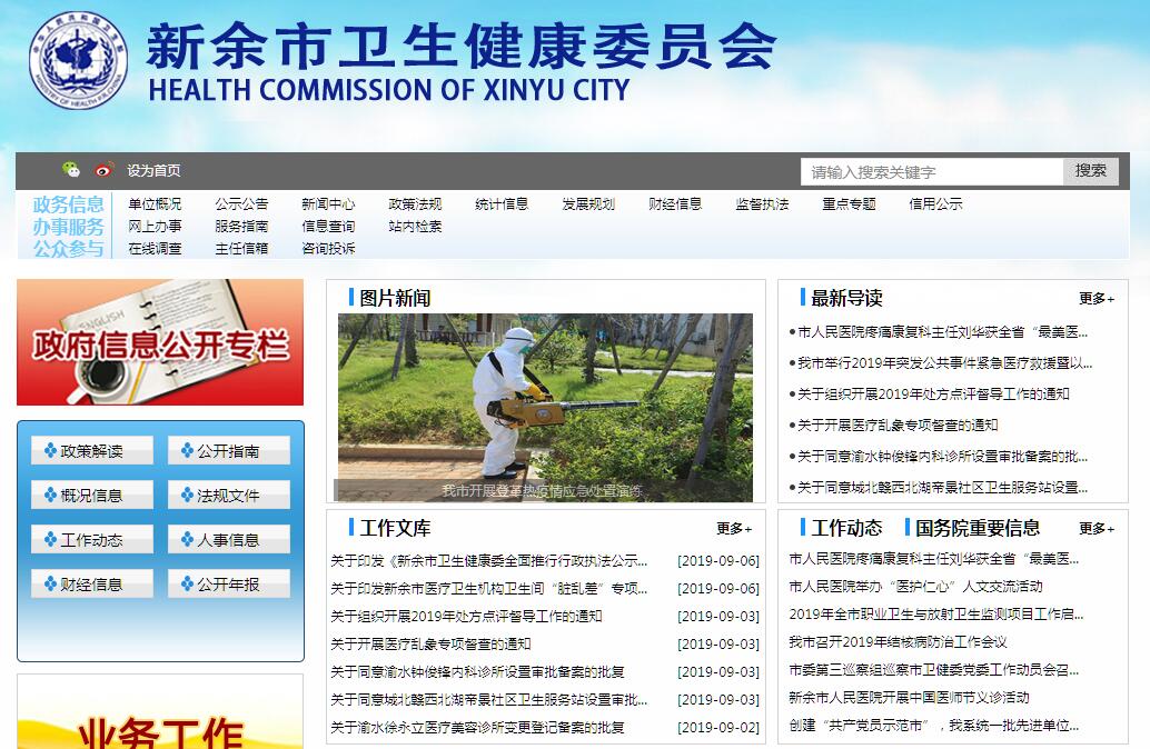 新余市卫生健康委员会主要职责:(一)贯彻落实国家和省有关国民健康的政策、卫生健康事业发展的法律法规、政策、规划。拟订全市卫生健康事业发展相关政策、规划并组织实施,统筹规划卫生健康资源配置及项目建设,指导区域卫生健康规划的编制和实施,指导区域卫生健康信息化建设。制定并组织实施推进卫生健康基本公共服务均等化、普惠化、便捷化和公共资源向基层延伸等政策措施。(二)落实公立医院党建工作任务。指导协调全市卫生健康行业党的建设工作,统筹推进全市公立医院、基层医疗卫生机构、计生服务机构、民营医疗机构等党的建设工作。建立公立医院党建目标责任制和党建工作质量评价考核制度。(三)协调推进全市深化医药卫生体制改革,研究提出深化全市医药卫生体制改革政策、措施的建议。组织深化全市公立医院综合改革,推进管办分离,健全现代医院管理制度,制定并组织实施推动卫生健康公共服务提供主体多元化、提供方式多样化的政策措施,提出医疗服务和药品价格政策的建议。(四)贯彻执行国家免疫规划,制定并组织落实疾病预防控制规划以及严重危害人民健康公共卫生问题的干预措施。(五)负责卫生应急工作。指导全市卫生应急体系和能力建设。组织和指导突发公共卫生事件的预防控制、应急处置和各类突发公共事件的医疗卫生救援。根据授权发布突发公共卫生事件应急处置信息。(六)组织拟订并协调落实应对人口老龄化政策措施,负责推进老年健康服务体系建设和医养结合工作。(七)贯彻落实国家药物政策和国家基本药物制度,组织拟订全市药物使用的相关政策措施,开展药品使用监测、临床综合评价和短缺药品预警。组织开展食品安全风险监测评估,宣传贯彻国家、省食品安全标准。(八)负责卫生健康系统安全管理工作,负责职责范围内的生态环境保护工作,承担职业健康管理职责。负责职责范围内的职业卫生、放射卫生、环境卫生、学校卫生、公共场所卫生、饮用水卫生等公共卫生的监督管理,负责传染病防治监督,健全卫生健康综合监督体系。(九)制定医疗机构、医疗服务行业管理办法并监督实施,建立医疗服务评价和监督管理体系。制定并组织实施医疗服务规范、标准和卫生健康专业技术人员执业规则、服务规范。(十)负责计划生育管理和服务工作,开展全市人口监测预警,研究提出全市人口与家庭发展相关政策建议,完善和落实我市计划生育政策。(十一)指导全市卫生健康工作,指导全市卫生健康人才队伍建设,指导基层医疗卫生、妇幼健康服务体系和全科医生队伍建设。推进卫生健康科技创新发展。(十二)负责市保健对象的医疗保健工作,负责全市重要会议与重大活动的医疗卫生保障工作。(十三)贯彻执行国家、省中医药事业发展的法律法规、规划、政策和相关标准,制定全市中医药中长期发展规划,将其纳入全市卫生健康事业发展总体规划和战略目标,并组织实施。(十四)承担市老龄工作委员会日常工作。指导市计划生育协会的业务工作。(十五)完成市委、市政府交办的其他任务。