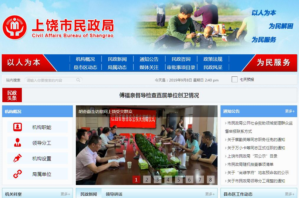 上饶市民政局主要职责:1.拟订全市民政事业发展规划和标准,拟定有关地方性法规文件草案并组织实施。2.承担全市社会团体、社会服务机构登记管理工作承担社会组织信息管理工作;参与指导全市社会组织党建工作。3.健全全市城乡社会救助体系,组织实施全市城乡居民最低生活保障、临时救助、精减退职老职工救助工作;牵头负责农村脱贫攻坚兜底保障和城镇贫困群众脱贫解困工作;指导全市流浪乞讨人员救助管理工作。4.拟订全市城乡社区治理措施,统筹推进城乡社区治理工作;组织实施全市城乡基层群众自治建设工作,推动城乡基层民主政治建设;提出加强和改进城乡基层政权建设的建议。5.拟订全市行政区划管理措施、行政区域界线、地名管理办法。承办全市县(市、区)和乡(镇)、街道的设立撤销、调整、更名、行政区域界线变更及政府驻地迁移的审核报批工作;组织编制市中心城区地名规划,负责地名标准化管理,组织设置地名标志,依法查处违反地名管理规定的行为承担权限内地名命名、更名的审核、报批、发布工作;承担市中心城区地名标志的设置和管理工作;承担市级地名图、录、典、志的编纂工作;指导各县(市、区)地名管理工作;负责市际行政区域界线的勘定、管理及边界争议的调处事务;组织协调并指导各县(市、区)开展行政区域界线管理工作。6.拟订全市养老服务体系建设规划、标准并组织实施,负责统筹推进、指导、管理养老服务工作,承担城乡特困人员救助供养、老年人福利和特殊困难老年人救助工作,指导特困人员供养机构建设。7.拟订全市儿童福利和未成年人保护政策,牵头推进农村留守儿童关爱保护和困境儿童保护工作,指导各地儿童福利机构、未成年人保护机构建设。8.拟订全市婚姻管理、殡葬管理措施,负责推进婚俗和殡葬改革,指导婚姻、殡葬服务管理工作,指导残疾人权益保障工作。9.拟订全市慈善事业发展规划,监督指导慈善活动。会同有关方面拟订全市社会工作发展规划和职业规范,推进全市社会工作人才队伍建设和相关志愿者队伍建设。10.按职责负责民政系统行业安全生产监督管理工作指导养老服务、特困供养、儿童福利、未成年人保护、救助管理、殡葬服务等民政服务机构的安全生产监督管理工作。11.按职责负责福利彩票管理工作。12.完成市委、市政府交办的其他任务。