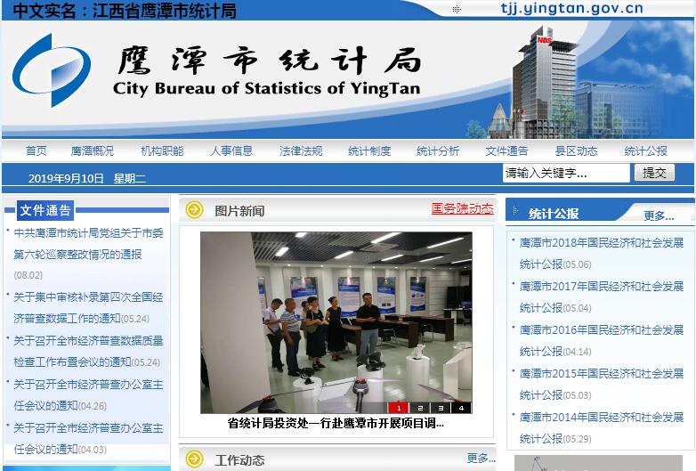 鹰潭市统计局主要职责:(一)贯彻执行国家和省有关统计工作的方针政策、方法制度和法律法规并监督实施;起草有关地方性法规、规章草案,拟订全市统计工作规划和调查计划并组织实施;承担组织和协调全市统计工作,确保统计数据真实、准确、及时的责任。(二)拟订地方统计报表制度,组织实施全市及各县(市、区)国民经济核算制度和投入产出调查,核算全市及各县(市)区生产总值,汇编提供国民经济核算资料。(三)会同有关部门组织实施全市人口、经济、农业等重大市情市力普查,汇总、整理和提供有关市情市力方面的统计数据。(四)组织实施全市国民经济各行业的统计调查,收集、汇总、整理和提供有关调查的统计数据,综合整理和提供旅游、对外经济、交通运输、通讯、教育、卫生、社会保障、公用事业等全市性基本统计数据。(五)组织实施能源、投资、消费、价格、收入、科技、人口、劳动力、社会发展基本情况、环境基本状况等统计调查,收集、汇总、整理和提供有关调查的统计数据。(六)组织和指导全市各县(市)区、各部门统计调查工作,统一核定、管理、公布全市性基本统计资料,定期发布全市国民经济和社会发展情况的统计信息,组织建立服务业统计信息共享和发布制度。(七)对国民经济、社会发展、科技进步和资源环境等情况进行统计分析、统计预测和统计监督,向市委、市政府及有关部门提供统计信息和咨询建议。(八)依法审批或者备案全市各县(市)区、各部门统计调查项目,指导专业统计基础工作、统计基层基础规范化建设,组织建立服务业统计信息管理制度,建立健全统计数据质量审核、监控和评估制度,开展对重要统计数据的审核、监控和评估。(九)协助各县(市、区)管理统计系统领导干部,指导全市统计专业技术队伍建设,会同有关部门组织管理全市统计专业技术资格考试、职务评聘、从业资格认定工作。(十)建立并管理全市统计信息化系统和统计数据库系统,指导各县(市、区)、各部门统计数据库和网络的基本标准和运行规则的实施工作,指导全市统计信息化系统建设。(十一)承办市人民政府交办的其他事项。
