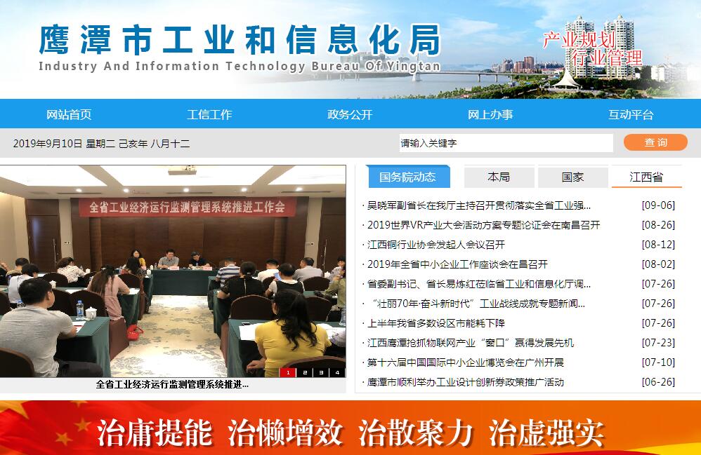 | 网站简介: 鹰潭市工业和信息化局,是鹰潭市机构改革2019年组建的新部门,为鹰潭市人民政府工作部门。 |