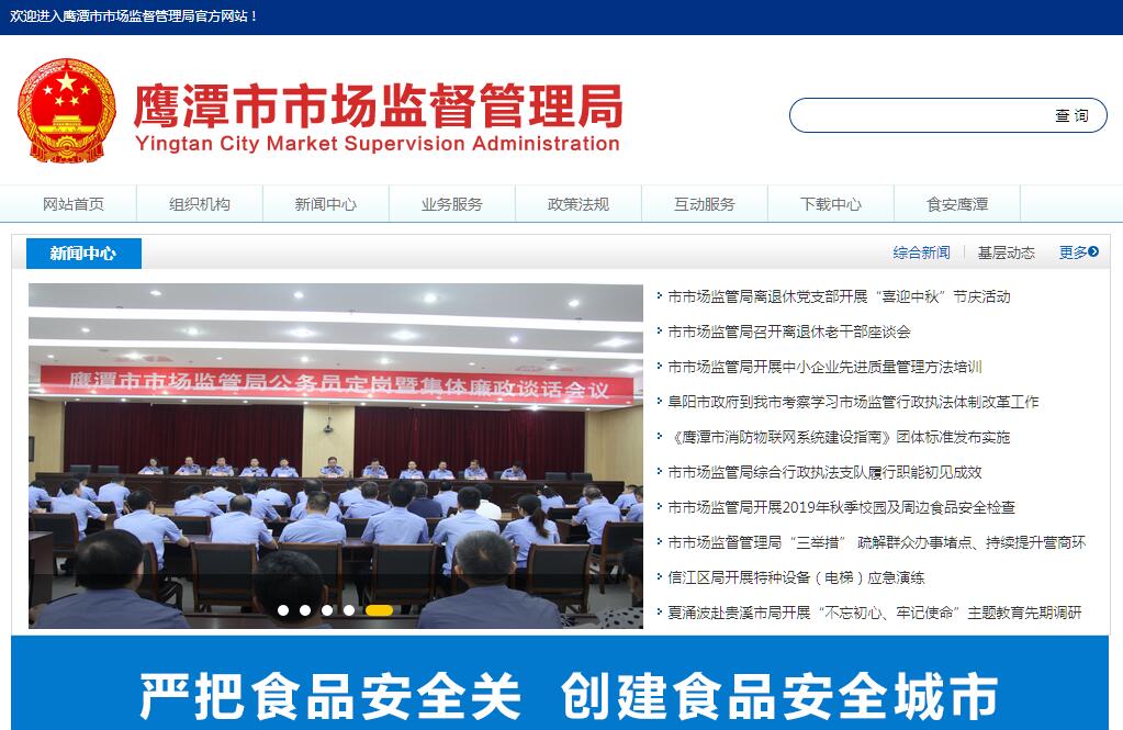 鹰潭市市场监督管理局主要职责:(一)负责市场综合监督管理。贯彻执行国家和省市场监督管理的方针、政策和有关法律法规,起草市场监督管理地方政策、标准,组织实施质量强市战略、食品安全战略和标准化战略,拟订并组织实施有关规划,规范和维护市场秩序,营造诚实守信、公平竞争的市场环境。(二)负责市场主体统一登记注册。负责全市各类企业、农民专业合作社和从事经营活动的单位、个体工商户以及外国(地区)企业、常驻代表机构等市场主体的登记注册工作。建立市场主体信息公示和共享机制,依法公示和共享有关信息,加强信用监管,推动市场主体信用体系建设。(三)负责指导和监督市场监管综合执法工作。指导区(市)市场监管综合执法队伍整合和建设,推动实行统一的市场监管。对市场主体准入、生产、经营、交易中的有关违法行为和案件进行查处和指导,查处督办辖区内大案要案和疑难案件。规范市场监管行政执法行为。(四)负责反垄断统一执法。统筹推进竞争政策实施,组织实施公平竞争审查制度。依法依授权承担有关反垄断调查及执法工作。(五)负责监督管理市场秩序。依法监督管理市场交易、网络商品交易及有关服务的行为。组织指导查处价格收费违法违规、不正当竞争、违法直销、传销、侵犯商标专利知识产权和制售假冒伪劣行为。依法组织实施合同、拍卖行为的监督管理,管理动产抵押物登记,组织指导开展反走私相关执法工作。指导广告业发展,监督管理广告活动。承担依法查处无照生产经营和相关无证生产经营行为。指导市消费者权益保护委员会开展消费维权工作。承担受理市场监管领域举报投诉行为的监督检查职能。(六)负责宏观质量管理。拟订并组织实施质量发展的制度措施。负责政府质量奖励制度的实施。统筹市质量基础设施建设与应用,会同有关部门组织实施重大工程设备质量监理制度,组织重大质量事故调查,贯彻实施缺陷产品召回制度,监督管理产品防伪工作。(七)负责产品质量安全监督管理。负责产品质量安全风险监控、监督抽查工作。组织实施质量分级制度、质量安全追溯制度。负责工业产品生产许可管理。(八)负责特种设备安全监督管理。综合管理特种设备安全监察、监督工作,监督检查高耗能特种设备节能标准和锅炉环境保护标准的执行情况。(九)负责食品安全监督管理综合协调。组织实施食品安全重大政策。负责食品安全应急体系建设,组织指导重大食品安全事件应急处置和调查处理工作。督促检查各区(市)党委、政府履行食品安全监督管理职责并负责考核评价。落实食品安全重要信息直报制度。承担市食品安全委员会日常工作。(十)负责食品安全监督管理。建立覆盖食品生产、流通、消费全过程的监督检查制度和隐患排查治理机制并组织实施,防范区域性、系统性食品安全风险。推动建立食品生产经营者落实主体责任的机制,健全食品安全追溯体系。组织开展食品安全监督抽检、风险监测、核查处置和风险预警、风险交流工作。组织实施特殊食品监督管理。(十一)负责统一管理计量工作。推行法定计量单位,执行国家计量制度,管理计量器具及量值传递溯源和比对。规范、监督商品量和市场计量行为。(十二)负责统一管理标准化工作。组织实施标准化法律、法规和规章、制度,依法统筹推进全市标准化建设。依法协调指导和监督地方标准、团体标准等制定工作,依法承担地方标准的立项、编号和发布等管理工作。组织标准的宣传、实施和监督工作,依法查处不符合强制性标准的行为。(十三)负责统一管理认证认可、合格评定与检验检测监督管理工作。组织实施认证认可、合格评定与检验检测监督管理的制度、措施,规范检验检测市场,完善检验检测体系,指导协调检验检测行业发展,依法监督认证认可与检验检测工作。(十四)负责统一管理知识产权工作。贯彻执行国家保护商标、专利、原产地地理标志等知识产权的法律法规与方针、政策。统筹协调涉外知识产权工作,并负责对外联络与合作交流。负责知识产权保护工作,指导承担知识产权违法行为的查处、争议处理、维权援助、纠纷调处等执法工作,监督管理商标印制企业。负责促进知识产权运用和管理,做好产权确权、侵权判定、申请相关工作,规范指导知识产权类无形资产评估工作。探索建立知识产权公共服务体系,推进专利信息利用和服务工作。指导区(市)知识产权保护工作。(十五)负责市场监督管理科技和信息化建设、新闻宣传。按规定承担技术性贸易措施有关工作。(十六)负责药品(含疫苗、中药、民族药,下同)、医疗器械和化妆品经营、使用环节安全监督管理。贯彻执行国家药品、医疗器械和化妆品安全监督管理的法律法规和规章,负责药品零售、医疗器械经营许可,开展对药品零售、医疗器械和化妆品经营、使用环节的检查和对相关违法行为的查处,开展问题产品召回和处置工作;推动药品检验检测体系、电子监管追溯体系和信息化建设;负责开展药品安全宣传、教育培训和交流合作。(十七)负责监督实施国家药典等药品和医疗器械标准、分类管理制度,负责监督实施药品和医疗器械经营、使用质量管理规范。健全药品不良反应、医疗器械不良事件监测体系,并开展监测和处置工作。组织实施执业药师资