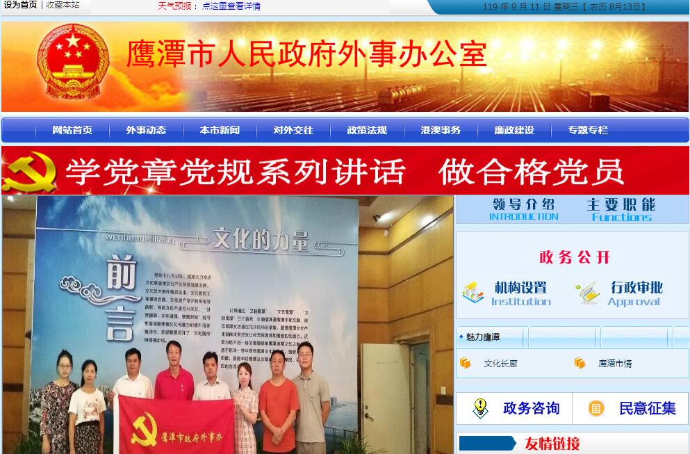 | 网站名称: | 鹰潭市人民政府外事办公室 | ||