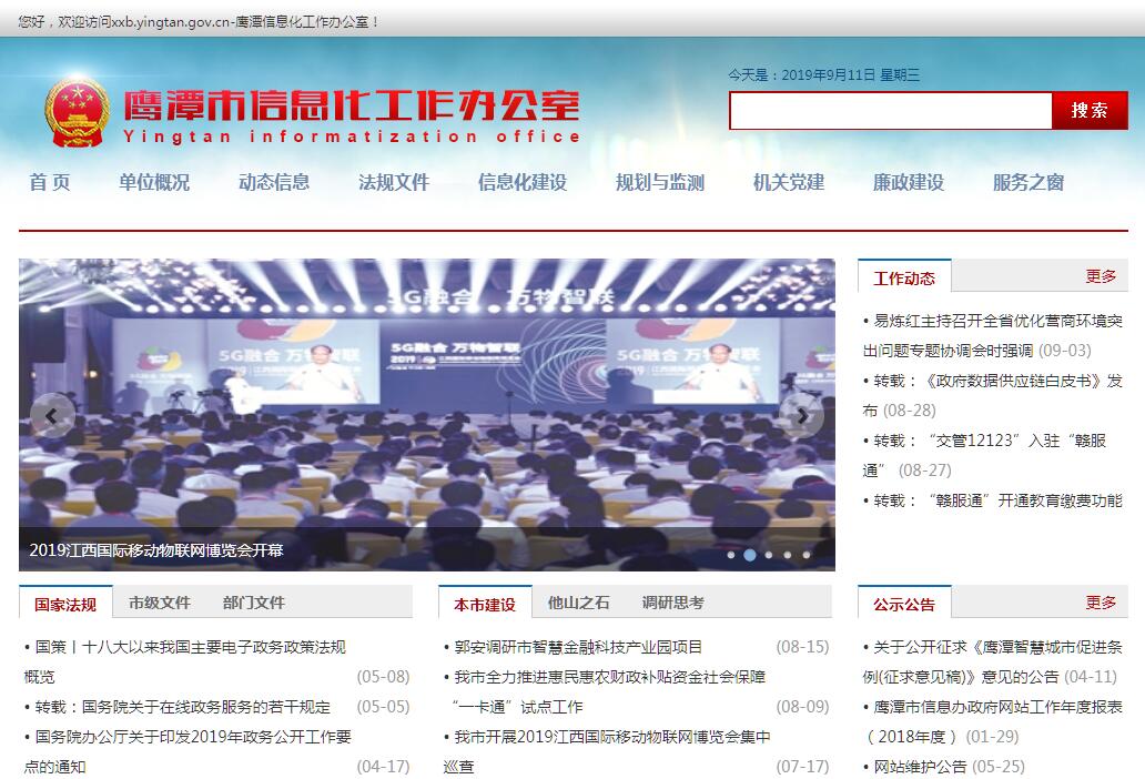 鹰潭市信息化工作办公室主要职责:(一)贯彻执行国家、省信息化工作的方针、政策和法律、法规、规章;参与拟订本市相关工作规定、规划和计划;组织开展全市宏观经济分析、预测和监测工作。(二)负责审核本市重大信息化建设工程项目,并监督实施;参与管理和监督全市信息化建设专项资金的使用;组织、协调和管理信息化基础设施建设。(三)承担“数字鹰潭”建设工作委员会的日常工作,负责“数字鹰潭”的规划、建设和管理,负责全市信息资源的开发、整合、利用和管理,开展全市性的数据库再建设,实现党政机关网络互联互通和信息资源共享。(四)负责电子政务平台、公共服务平台的建设和管理,承担全市政务信息网建设和管理。(五)负责鹰潭市政府门户网站的建设和管理工作,指导市级党政机关子网站建设;负责审核机关事业单位互联网域名。(六)参与信息网络安全工作;协助做好信息网络安全技术、设备和产品的监督管理及计算机病毒防范工作。(七)协助制定全市信息化建设人才的规划、培训、引进和管理机制;组织指导全市信息化和“数字鹰潭”建设宣传普及和教育培训工作,负责全市信息化和“数字鹰潭”建设的对外交流和合作。(八)承办市委、市政府交办的其他事项。
