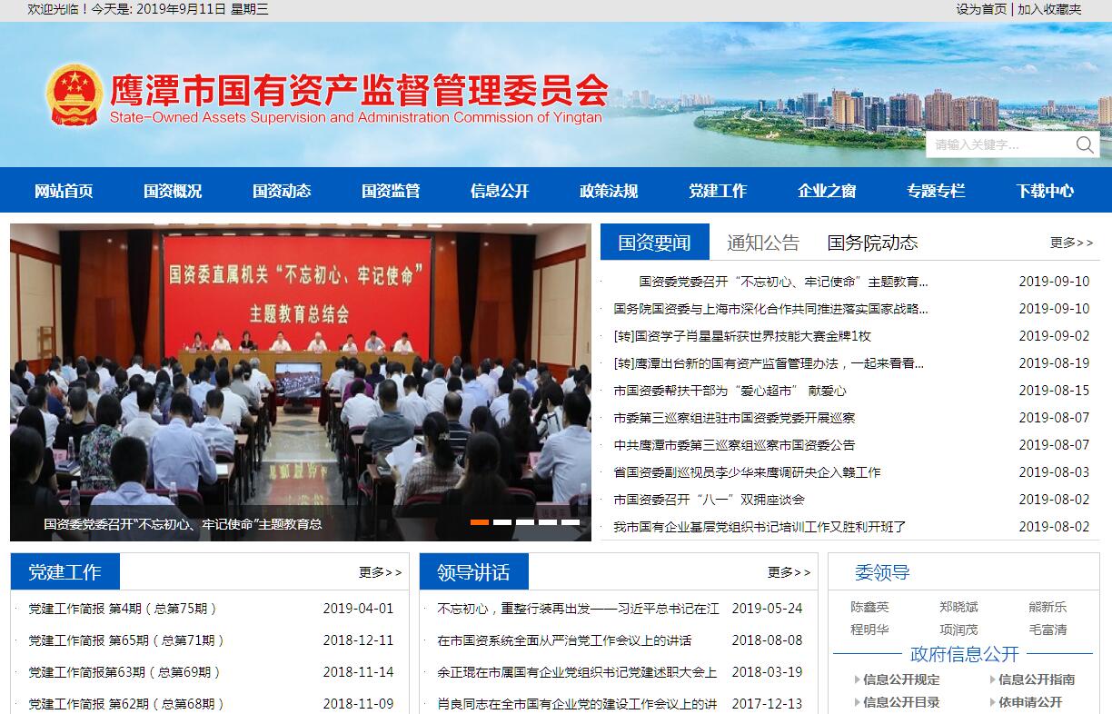 鹰潭市国有资产监督管理委员会,为代表鹰潭市人民政府对授权监管企业和市直行政事业单位国有资产履行出资人职责的市政府正县级特设机构。其主要职责是:市国资委根据市政府授权,依照《中华人民共和国公司法》、《中华人民共和国企业国有资产法》等法律、法规,代表市政府对出资监管企业履行出资人职责,对市直行政事业单位国有资产、市直出资监管企业以外的国有独资、控股、参股企业和市国有资产经营集团公司、龙虎山旅游文化发展集团公司的国有资产实施保值增值监管;负责监缴所监管企业国有资本金收益;指导、推进国有企业的改革和重组;推进国有企业现代企业制度建设,完善公司法人治理结构;研究和审核所监管企业的发展战略和规划;推动国有经济结构和布局的战略性调整。研究和指导所监管企业的投融资工作。代表市政府向出资监管企业派出监事会,负责监事会的日常管理工作。通过法定程序对出资监管企业负责人进行任免、考核,并根据其经营业绩进行奖惩;建立符合社会主义市场经济体制和现代企业制度要求的选人、用人机制。履行市委规定的企业党的建设方面的职责。通过统计、稽核等方式对所监管国有资产的保值增值情况进行监管;建立和完善国有资产保值增值指标体系,拟订考核标准。负责监管企业工资分配的管理工作,拟订国有企业经营者收入政策和所监管企业负责人的薪酬制度及激励方式,并组织实施。负责处置企业改制过程中形成的对金融机构及金融资产管理公司的债务。负责全市产权交易的管理、监督、协调和指导。按照出资人职责,负责督促、检查所监管企业贯彻落实国家安全生产方针政策及有关法律法规、标准等工作。依法对县(市、区)国有资产管理工作进行指导和监督。