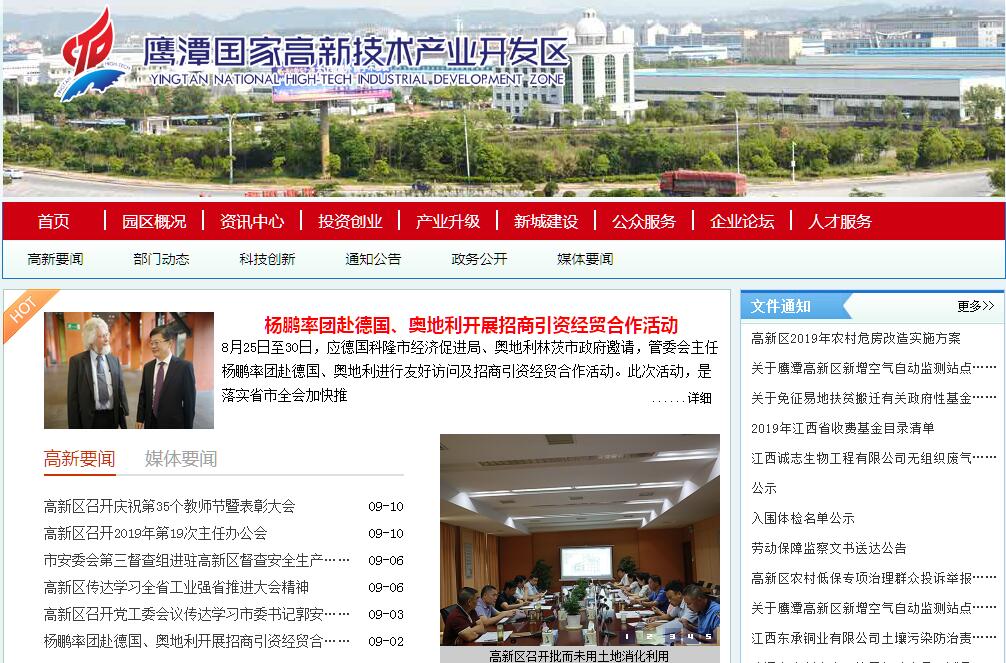 鹰潭高新技术产业开发区位于鹰潭市城区西南处,分为白露科技园、龙岗产业园,辖区面积60平方公里,其中规划建设面积30平方公里;总人口5万人,其中企业员工2万人;现有企业500余家。其前身为鹰潭市工业园区,成立于2001年6月,2006年3月获批为省级工业园区,2012年8月经国务院批准,升级为国家高新技术产业开发区。进入新的发展时期,高新区全面贯彻党的十九大精神,坚持以习近平新时代中国特色社会主义思想为指引,按照“全域一体、改革创新、优化生态、小市大为”的总体要求和打造“两都一城”的发展定位,围绕“五年决战翻番”的总体目标,落实“高新引领、产业升级、改革突破、融合发展”的工作思路,坚持以创新驱动为引领,以项目建设为支撑,以要素聚合为保障,聚焦培育壮大新兴产业、优化升级传统产业,加速构建了“移动物联网(智能制造)、铜基新材料、大健康”产业发展格局。2017年,实现工业主营业务收入404亿元,完成财政收入21.07亿元。2018年上半年,实现工业主营业务收入223亿元,完成财政收入12.84亿元。这里是智慧新城的排头兵。移动物联网产业发展实现网络覆盖、公共服务平台建设和产品研发示范应用全国领跑。高标准建成中国鹰潭移动物联网产业园,并获批第八批国家新型工业化产业示范基地。新一代宽带无线移动通信网国家科技重大专项(03专项)成果转移转化试点示范基地落户高新区。设立了中国信通院物联网研究中心、中国泰尔实验室、国家物联网通信产品质量监督检验中心以及3个开放实验室,移动物联网产业联盟集聚了国内172家物联网龙头企业、科研机构,已成功孵化产品38种,实际试点应用场景33个。产业样板品牌效应凸显,众多院士和国内顶尖专家来高新区考察指导,成功承办第十四届中国信息港论坛、中国鹰潭移动物联网产业联盟成立大会等多场有影响力的活动。这里是世界铜都的主战场。“八位一体”铜产业体系不断完善,首家国家级铜检测中心落户园区。全国铜及铜合金循环利用产业知名品牌创建试点区加速推进,铜精深研究总院加快建设,铜基新材料产业基地和绿色水工产业基地获批为省级高新技术产业化基地。铜产业链和创新链协同发展,致力于和浙江大学、江西理工大学、北京有色金属研究总院等院校合作,支持园区铜加工企业实施技术改造、产品升级、链式扩张,推动产业链向电子信息和电力电气领域延伸。2017年,高新区铜加工企业主营业务占园区总收入的73%。这里是创新创业的新高地。高新区是首批省级“双创”示范基地。颐高万创空间被认定为国家级众创空间。首家省级“海智计划”工作站在园区挂牌。区内现有博士后创新实践基地3个,各类研发服务平台44个,其中国家级平台2个,省级平台22个,拥有授权专利1935件,高新技术企业45家,三川智慧、广信新材料分别获批国家、省级智能制造示范企业。高标准打造了中国鹰潭移动物联网产业园人才服务中心并投入运营,创业孵化服务、引资引智引技全面提升,优惠政策、优化环境、优质服务、优秀创意“四优服务”持续完善,区域创新创业新高地已经形成。大道同行,有志必征;融商聚智,基业乃成!鹰潭高新区正以蓄势待发之态、鼎新革故之策,携手各界精英共同开辟未来之路。