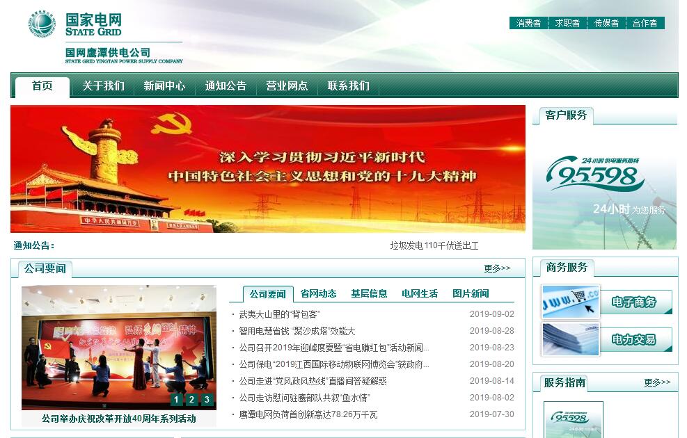 鹰潭1983年设市,总面积3556平方公里,人口130万,下辖月湖区、贵溪市、余江县、信江新区管委会、龙虎山风景区管委会、鹰潭市国家高新技术产业开发区。毛主席曾赋诗盛赞余江,也曾称赞龙虎山秀美神奇,令人神往;邓小平3次路过鹰潭,称“鹰潭是个好口子”;习近平总书记赞誉“龙虎天下绝”。当前鹰潭市正以新发展理念为引领,以供给侧结构性改革为主线,坚持全域一体、改革创新、优化生态、小市大为,按照“三大四聚”发展路径和“六强四动一保障”工作思路,加快打造世界铜都、中华道都、智慧新城。国网江西省电力有限公司鹰潭供电分公司是国有中一型企业,下辖月湖区、贵溪市、余江县三个县级供电公司,以建设、运营鹰潭电网为核心业务。担负着全市工农业生产和居民生活供电任务,供区内有沪昆高铁,鹰厦、浙赣、皖赣电气化铁路、贵溪冶炼厂等重要用户。2017年有效应对了洪涝、酷暑、雨雪冰冻等恶劣灾害天气,电网负荷六创新高,被国网江西省电力有限公司授予2017年安全生产先进单位。打造了全国首批“多表合一”示范区,并积极推广水电气“一单式”缴费,房产交易与水电气联动过户等“信息多跑、群众少跑”为民措施。蝉联全省供电单位区域标杆,营销专业获管理标杆。鹰潭电网现有220千伏变电站5座、110千伏变电站16座,110千伏及以上变电容量2355兆伏安、输电线路1026公里。鹰潭电网是以500千伏为支撑点,220千伏环网运行,并与上饶、抚州、乐平等地通过500千伏及220千伏线路联网,110千伏变电站全部实现备用电源自动投入。该公司认真落实国家电网公司新时代发展战略,持续“转作风、保安全、提服务、促发展”,致力电网科学发展、保障电力供应、做好优质服务,以服务鹰潭经济社会发展为己任,全力服务人民美好生活的需要。曾荣获全国模范劳动关系和谐企业、全国“模范职工之家”、全国“五四”红旗团委、国家电网公司首届文明单位等多项荣誉称号。