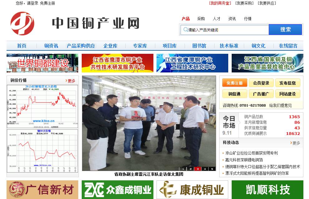 | 网站简介: 中国铜产业网---打造中国铜产业公共服务示范平台!中国铜产业网由鹰潭市生产力促进中心主办。 |