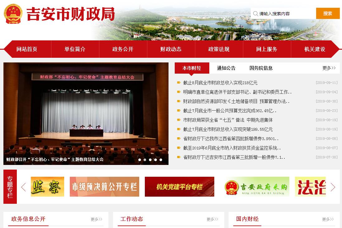根据《中共江西省委办公厅、江西省政府办公厅关于印发<吉安市市县机构改革方案>的通知》(赣厅字[2018]94号)、《中共吉安市委办公室、吉安市人民政府办公室关于印发<吉安市机构改革实施方案>的通知》(吉办发[2019]1号)精神,制定本规定。吉安市财政局是市政府工作部门,为正处级。吉安市财政局贯彻落实党中央关于财政工作的方针政策和决策部署,在履行职责过程中坚持和加强党对财政工作的集中统一领导。其主要职责是:(一)贯彻执行国家的财政、税收法律法规和政策;分析预测宏观经济形势,参与制定全市各项有关宏观经济政策,提出运用财税政策实施宏观调控和综合平衡社会财力的建议;研究全市财税发展举措,拟订市与区、国家与企业的具体分配政策措施,完善鼓励公益事业发展的财税方案;编制全市中长期财政规划;指导全市财政工作。(二)起草全市财政、财务、会计管理、行政事业单位国有资产管理等方面的实施办法和有关制度,并监督执行。(三)负责管理市本级各项财政收支;编制市本级年度预算草案和汇编全市年度预算;组织全市和市本级预算的执行;编制市本级年度决算草案和汇编全市年度决算;受市政府委托,向市人大报告全市及市本级预算及其执行情况,向市人大报告市本级决算。(四)管理政府非税收入、政府性基金;负责市本级政府非税收入征收管理和监督稽查;管理财政票据;负责市本级公用住房资金的管理、核算和拨付。(五)制定国库管理制度和国库集中收付制度,指导和监督全市国库业务,按规定开展国库现金管理工作;负责市本级财政直接支付资金的审核拨付;负责制定政府采购制度及监督管理,依法对采购人和采购代理机构、供应商、政府采购评审专家等政府采购当事人违法违规行为检查和处理。(六)制定行政事业单位国有资产管理规章制度;按规定管理行政事业单位国有资产;对行政事业单位国有资产管理执行情况进行监督管理,国有资产监督检查和违规处理,对行政、事业单位国有资产配置、使用、处置等事项进行审批;制定需要全市统一规定的开支标准和支出政策;负责财政预算内行政机构、事业单位和社会团体的非贸易外汇管理。(七)审核和汇总全市国有资本经营预决算草案;制定国有资本经营预算的制度和办法;收取市本级企业国有资本收益;组织执行企业财务制度,参与拟订企业国有资产管理相关制度;按规定管理资产评估工作。(八)办理和监督市本级财政的经济发展支出、市本级政府性投资项目的财政拨款;参与拟订市本级建设投资的有关政策;负责有关政策性补贴和专项储备资金财政管理工作;负责政府投资项目工程预算(招标控制价)、政府投资项目工程结算、政府投资项目变更工程预算、政府投资项目工程采购预算(招标控制价)评审工作以及政府投资项目工程招标入库造价咨询机构及其业务监督与管理。(九)会同有关部门管理全市财政社会保障和就业医疗卫生支出;拟订和组织执行社会保障资金的财务管理制度,编制全市社会保障预决算草案;组织实施对全市社会保障资金使用的财政监督;管理市级财政社会保障支出。(十)管理全市会计工作;监督和规范会计行为,指导和监督注册会计师和会计师事务所的业务,履行注册会计师任职资格年检、非执业注册会计师资格年检、注册会计师注册审核转报职责;指导和监督社会审计。(十一)监督全市财税法律法规的执行情况,提出加强财政管理的政策建议;组织实施全市财经监督检查工作,查处违反财经纪律的重大案件。(十二)参与研究制订全市政府债务管理制度;参与研究全市利用国际金融组织和外国政府贷款的有关政策和财务规章;防范化解地方政府债务风险。(十三)参与研究制订财政资金绩效管理政策、制度和实施办法,组织实施预算绩效管理。(十四)拟订全市财政科研工作计划和教育规划;组织和管理全市财政人员业务培训;负责财政信息和财政宣传工作。(十五)贯彻执行安全生产法律法规和市委、市政府安全生产工作部署,健全安全生产投入保障机制、重大安全隐患治理和监管能力建设的支持;负责将安全生产监督管理和行政执法等所需经费列入财政预算;落实安全生产工作所需的专项资金。(十六)依照国家规定和市人民政府关于加强环境保护的决策部署,根据本行政区域经济社会发展和环境保护工作的实际需要,落实必要的环境保护监管经费,保障环境保护投入,支持水、大气、土壤污染防治及农村环境综合治理工作。(十七)完成市委、市政府交办的其他任务。