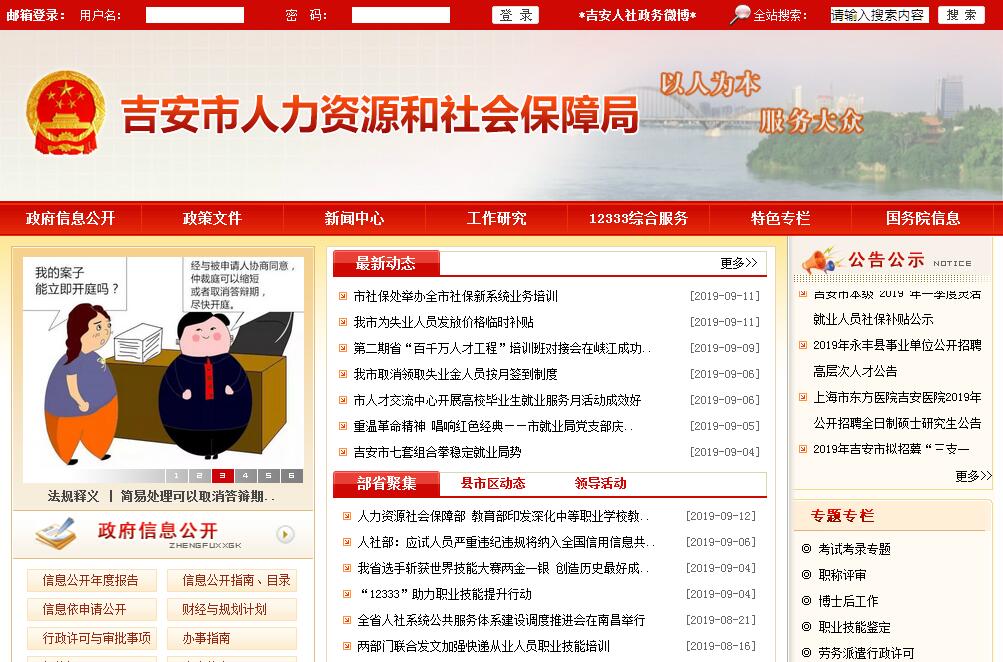 根据《中共江西省委办公厅、江西省政府办公厅关于印发<吉安市市县机构改革方案>的通知》(赣厅字〔2018〕94号)、《中共吉安市委办公室、吉安市政府办公室关于印发<吉安市机构改革实施方案>的通知》(吉办发〔2019〕1号),制定本规定。吉安市人力资源和社会保障局是市政府工作部门,为正处级。吉安市人力资源和社会保障局贯彻落实党中央关于人力资源和社会保障工作的方针政策和决策部署,在履行职责过程中坚持和加强党对人力资源和社会保障工作的集中统一领导。其主要职责是:(一)贯彻执行国家、省人力资源和社会保障的政策法规,起草全市人力资源和社会保障地方性规章草案;编制全市人力资源和社会保障事业发展中长期总体规划并组织实施。(二)拟订并组织实施全市人力资源市场发展规划和人力资源服务业发展、人力资源流动政策,促进人力资源合理流动、有效配置。(三)负责全市促进就业工作,拟订统筹城乡的就业发展规划和措施,完善公共就业创业服务体系,组织落实就业援助制度,统筹建立面向城乡劳动者的职业技能培训制度;落实高校毕业生就业政策。(四)统筹推进建立覆盖全市城乡的多层次社会保障体系,贯彻实施相关政策措施;会同有关部门做好全市养老、失业、工伤保险及其补充保险基金管理和监督工作;编制全市相关社会保险基金预决算草案;会同有关部门实施全民参保计划。(五)负责全市就业、失业和相关社会保险基金预测预警和信息引导,拟订应对预案,实施预防、调节和控制,保持全市就业形势稳定和相关社会保险基金总体收支平衡。(六)贯彻执行国家、省劳动、人事争议调解仲裁制度和劳动关系政策;完善劳动关系协商协调机制;贯彻执行国家、省关于职工工作时间、休息时间和休假制度以及消除非法使用童工政策和女工、未成年工的特殊劳动保护政策;组织实施劳动保障监察,协调劳动者维权工作,依法查处重大案件。(七)做好全市职称评审工作,牵头推进深化职称制度改革;贯彻执行国家、省专业技术人员管理、继续教育和博士后管理等政策;负责高层次专业技术人才培养和选拔工作;贯彻执行国家、省吸引留学人员来华(回国)工作或定居政策;贯彻执行国家、省技能人才培养、评价、使用和激励制度。完善职业资格制度,健全职业技能多元化评价政策。(八)会同有关部门指导全市事业单位人事制度改革,按照管理权限负责规范事业单位岗位职责、公开招聘、聘用合同等综合人事管理工作;指导有关安全生产综合管理部门研究制定、建立健全安全生产工作考核评价奖惩体系,将安全生产履职情况作为事业单位工作人员奖惩、考核的重要内容;做好全市事业单位人员和机关工勤人员管理工作。(九)负责市直单位绩效管理工作;会同有关部门贯彻落实国家荣誉制度,承担市政府工作部门系统表彰的组织实施和全市评比达标表彰领导小组办公室日常工作。承办以市人民政府名义任免的人事任免手续。(十)会同有关部门做好全市事业单位人员工资收入分配工作,建立企事业单位人员工资决定、正常增长和支付保障机制;贯彻执行国家、省有关企事业单位人员福利和离退休政策。(十一)会同有关部门拟订全市农民工工作综合性规划,推动相关政策落实,协调解决重点难点问题,维护农民工合法权益。(十二)完成市委、市政府交办的其他任务。