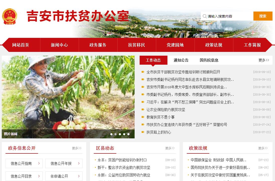 吉安市扶贫办公室的主要职责是:(一)贯彻落实中央和省、市党委政府关于脱贫攻坚、扶贫开发、老区建设和水库移民工作的方针政策和决策部署;负责制定全市精准扶贫、精准脱贫、老区建设和水库移民工作等方面的政策措施、工作方案并组织实施;负责全市精准扶贫对象、水库移民的动态管理和统计监测工作。(二)依据中央和省、市党委政府提出的脱贫攻坚目标任务,负责制定全市精准扶贫、精准脱贫总体规划和年度工作计划并组织实施;负责编制全市脱贫攻坚、老区建设和大中型水库移民后期扶持项目库和年度项目计划,并督促指导各地按计划实施;负责审查全市易地扶贫搬迁和大中型水利水电工程移民安置规划并监督实施;负责审核全市小型水利水电工程移民安置规划并监督实施。(三)依据资金管理权限,负责制定全市财政扶贫资金和水库移民后期扶持资金的分配方案;会同有关部门不断完善财政扶贫资金和水库移民后期扶持资金使用管理办法;负责对全市财政扶贫资金和水库移民后期扶持资金使用情况的稽查检查。(四)负责指导监督全市脱贫攻坚、老区建设和水库移民后期扶持项目的实施和管理工作。(五)负责制定全市党政机关、驻地部队、企事业单位和社会各界定点扶贫、对口帮扶工作方案,并组织、指导、监督落实;引导和推进非公经济组织开展产业扶贫、就业扶贫等形式参与扶贫开发,助力脱贫攻坚。(六)负责制定全市扶贫干部、贫困群众和水库移民培训规划和年度培训计划,并组织或监督分类分级实施;负责组织、落实科技扶贫示范推广工作;负责组织开展智志双扶和感恩教育工作。(七)指导贫困地区加强对外交流和联络工作,争取并按规定接受境外政府和非政府组织的援助;负责外资扶贫资金款项的引进、管理和监督检查工作。(八)行使市扶贫攻坚领导小组办公室工作职责,统筹协调和督促检查全市脱贫攻坚工作及行业扶贫落实情况。(九)完成市政府交办的其他任务。
