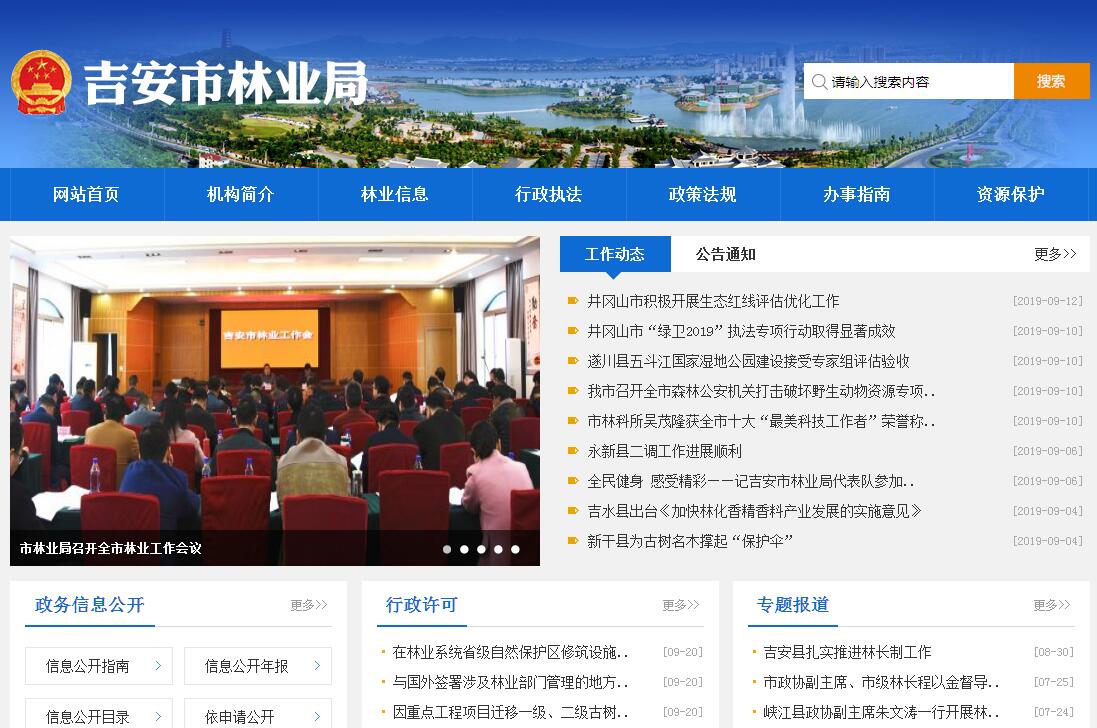 | 网站简介: 吉安市林业局负责全市林业及其生态建设的监督管理。组织、协调、指导和监督全市造林绿化工作。组织、指导全市森林资源保护和监督管理工作。组织、指导全市陆生野生动植物资源的保护和合理开发利用。组织、协调、指导和监督全市湿地保护工作。2019年8月,被国家林业和草原局表彰为“保护森林和野生动植物资源先进集体”。 |