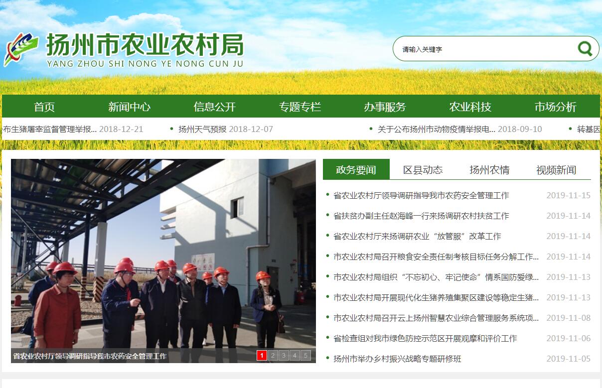 根据《省委办公厅省政府办公厅关于印发〈扬州市机构改革方案〉的通知》(苏办〔2019〕6号),制定本规定。扬州市农业农村局是市政府工作部门,为正处级,加挂市政府扶贫工作办公室牌子。扬州市委农村工作领导小组办公室(以下简称市委农办)设在市农业农村局,接受市委农村工作领导小组的直接领导,承担市委农村工作领导小组具体工作,组织开展“三农”重大问题的政策研究,协调督促有关方面落实市委农村工作领导小组决定事项、工作部署和要求等。市农业农村局的内设机构根据工作需要承担市委农办相关工作,接受市委农办的统筹协调。扬州市农业农村局负责贯彻落实中央关于“三农”工作的方针政策和省委、市委决策部署,在履行职责过程中坚持和加强党对“三农”工作的集中统一领导。其主要职责是:(一)贯彻落实“三农”工作发展战略,统筹研究和组织实施“三农”工作发展战略、中长期规划、重大政策。指导农业综合执法。参与涉农价格、收储、金融、保险等政策制定。(二)统筹推动发展农村社会事业、农村公共服务、农村文化、农村基础设施和乡村治理。牵头组织改善农村人居环境。指导农村精神文明和优秀农耕文化建设。指导农业行业安全生产工作。(三)拟订深化农村经济体制改革和巩固完善农村基本经营制度的政策。负责农民承包地、农村宅基地改革和管理有关工作。负责农村集体产权制度改革,指导农村集体经济组织发展和集体资产管理工作。指导农民合作经济组织、农业社会化服务体系、新型农业经营主体建设与发展。(四)指导乡村特色产业、农产品加工业、休闲农业发展工作。提出促进大宗农产品流通建议,培育、保护农业品牌。发布农业农村经济信息,监测分析农业农村经济运行。承担农业统计和农业农村信息化有关工作。(五)负责种植业、畜牧业、渔业、农业机械化等农业各产业工作的监督管理。指导粮食等农产品生产。组织构建现代农业产业体系、生产体系、经营体系,指导种植业、畜牧业、渔业、农机标准化生产及建设工作。负责渔政渔港监督管理,承担渔业船舶检验和监督管理职责。(六)负责农产品质量安全监督管理。组织开展农产品质量安全监测、追溯、风险评估。参与制定农产品质量安全地方标准并会同有关部门组织实施。指导农业检验检测体系建设。依法实施符合安全标准的农产品认证和监督管理。(七)组织农业资源区划工作。指导农用地、渔业水域以及农业生物物种资源的保护与管理。负责水生野生动植物保护、耕地及永久基本农田质量保护工作。推进农业绿色发展,指导农产品产地环境管理和农业清洁生产及农产品禁止生产区划定。推广休耕轮作提高耕地地力,促进农业可持续发展。指导设施农业、生态循环农业、节水农业发展以及农村能源综合开发利用、农业生物质产业发展。牵头管理外来物种。(八)负责有关农业生产资料和农业投入品的监督管理。组织协调农业生产资料市场体系建设,拟订有关农业生产资料地方标准并监督实施。制定兽药质量、兽药残留限量和残留检测方法地方标准并按规定实施。组织兽医医政、兽药药政药检工作,负责执业兽医和畜禽屠宰行业管理。依法开展农作物种子(种苗)、种畜禽、肥料、农药、兽药、饲料及饲料添加剂的相关许可与监督管理。负责重大动物疫病应急防控工作。指导和督办重大农业案件的处理。(九)负责农业防灾减灾、农作物重大病虫害防治、重大动物疫病防控和协调渔业生产安全搜救工作。组织重大动植物疫病的防控工作,发布疫情并组织扑灭。指导动植物防疫检疫体系建设。组织种子、农机等救灾物资储备和调拨,提出生产救灾资金安排建议,指导紧急救灾和灾后恢复生产。(十)负责农业投资管理。提出农业投融资体制机制改革建议。编制市级投资安排的农业投资项目规划,提出农业投资规模和方向、扶持农业农村发展财政项目的建议,按照规定权限审批农业投资项目,负责农业投资项目资金安排和监督管理。组织实施中央和省投资安排的农业投资项目。(十一)推动农业科技体制改革和农业科技创新体系建设。指导农业产业技术体系和农技推广体系建设,组织开展农业领域的高新技术和应用技术研究、科技成果转化和技术推广。负责农业转基因生物安全监督管理和农业植物新品种保护。(十二)负责农业保险工作。拟定农业保险中长期发展规划并组织实施,指导农业保险品种开发,协调落实农业保险财政补助政策,指导、监督保险机构依法依规展业、承保、理赔。(十三)指导农业农村人才工作。拟订农业农村人才队伍建设规划并组织实施,指导农业教育和农业职业技能开发,指导新型职业农民培育、农业科技人才培养和农村实用人才培训工作。(十四)承办农业涉外事务工作,组织开展农业对外交流、农业利用外资、农业“走出去”、农业贸易促进和有关国际经济技术交流合作,指导开放型农业发展,协助做好农业援外工作。(十五)统筹推进扶贫开发工作。牵头拟订全市农村扶贫工作规划和年度计划,研究提出全市扶贫工作政策、措施建议并组织实施;统筹协调专项扶贫、行业扶贫和社会扶贫;推进落实精准扶贫工作长效机制和扶贫工作责任制,探索缓解相对贫困的有效路径。(十六)完成市委、市政府交办的其他任务