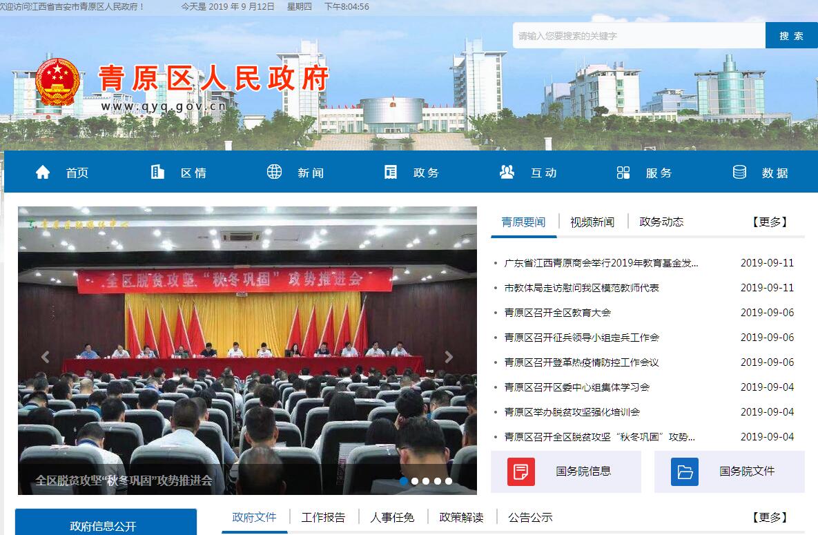 青原区是在2000年9月吉安撤地设市时经国务院批准组建的县级行政区,由原县级吉安市、吉水县、吉安县所属的10个乡镇场组成,面积915平方公里,人口22万,现辖6个建制镇1个畲族乡1个城市街道1个垦殖场,为吉安市中心城区和吉泰走廊核心区。青原,古老家园,正气之乡。这里历史文化底蕴深厚,人文荟萃、英才辈出,是唱响正气歌的民族英雄文天祥故里和南宋名臣胡铨故里;这里是庐陵文化核心区,是“中国下元宵文化之乡”,有渼陂古村、陂下古村、富田古镇等中国历史文化名村名镇和毛家、横坑、奁田等省级历史文化名村,古祠堂、古牌坊、古民居、古樟树浓缩了庐陵文化的精髓,现存平民银行、文天祥墓、渼陂永慕堂、王家诚敬堂、二七会议旧址等多处国家级文物保护单位;这里是王阳明“知行合一”思想的首践地和研究传播中心,1300多年前佛教七祖行思在青原山开创禅宗青原派系,“南禅祖庭”净居寺的禅语梵音至今仍远播世界各地。青原,红色故土,苏区起点。这里红色革命历史厚重,是第二次国内革命战争时期第一、二、三次反围剿的主战场,有“东井冈”的美誉。李文林式东固革命根据地是中央苏区的重要根基和出发点,与朱毛式井冈山根据地等并称为最具特色的根据地之一,毛泽东、朱德、陈毅等老一辈无产阶级革命家在此成就了红色经典。从“东井冈”走出了20位本土籍的共和国开国将军,现为全国爱国主义教育示范基地,被纳入国务院原中央苏区振兴规划和全省重点扶贫县市区范围。青原,绿色长廊,山水画卷。这里拥有国家4A级景区4个,3A级景区1个,以富水河生态景观带和青东休闲观光路“一带一路”为主轴,将“山川第一江西景”青原山景区、“庐陵文化第一村”渼陂旅游集聚区、“文山故里”富田景区、“红色畲乡”东固景区一线串珠。这里生态完好,东固山、天玉山葱郁含烟,富水河、潇泷河风光旖旎,白云湖、螺滩水碧波荡漾,是全国休闲农业和乡村旅游示范区、首批国家全域旅游示范区创建单位、第四批全国旅游标准化试点单位、全省第三批生态文明示范县、江西旅游强县,正着力打造环境优美、文化厚重、业态丰富、配套完善的美丽中国全域旅游示范样板。青原,年轻新区,发展福地。近年来,获得国务院支持原中央苏区振兴、省政府打造吉泰走廊重要增长带、全省统筹城乡发展试验区等政策支撑,具有吉安火车站、华能井冈山电厂坐落城区的发展优势。省级河东经济开发区形成了以电子信息产业集聚的新工业园和以循环经济为主导的富滩工业园,落户企业280余家。开发了贸易广场、汽车文化贸易城等专业市场,青原山对接组团城市板块和金融服务、电子商务、楼宇经济等现代服务业快速发展。2018年,全区完成地区生产总值86.07亿元(不含华能),财政总收入10.32亿元,固定资产投资44.48亿元,规模工业增加值38.28亿元(不含华能),城镇和农村居民人均收入分别增长8.7%和9.6%,青原正朝着全面推进全域旅游新景区、产业升级新园区、文明宜居新城区、美好生活新社区建设,打造美丽“四新”青原、实现全面小康目标加速前进。